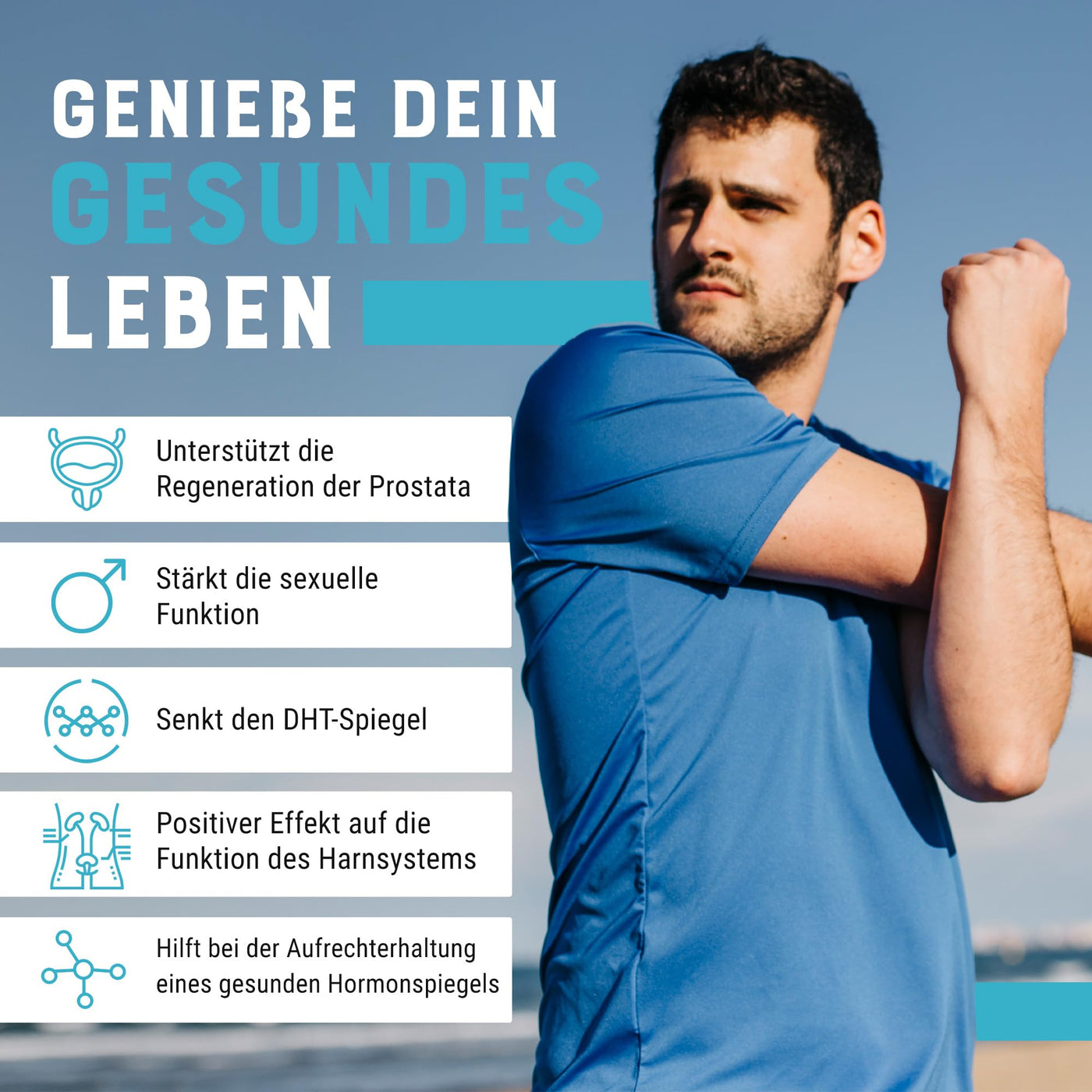 - With beta-sitosterol: Beta-sitosterol supports the regeneration of the prostate epithelium, increases the secretory capacity of the prostate, reduces its swelling and thus makes urination easier for men suffering from benign prostate enlargement. It also allows to reduce DHT (dihydrosterone) levels and is therefore used to prevent and support prostate treatment
