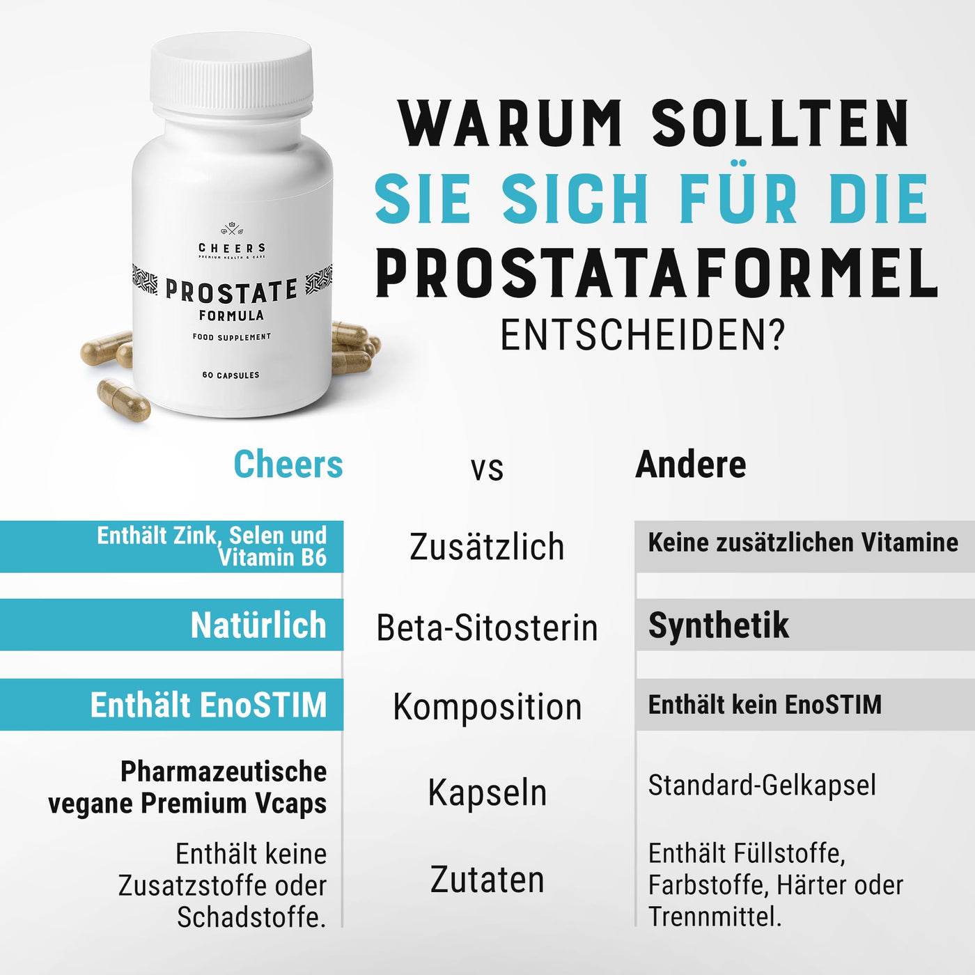 CHEERS - Prostate Formula, 60 Capsules for Urinary and Prostate Support, Prostate Supplement for Men, Selenium Supplement with Vitamin B6 and Zinc
