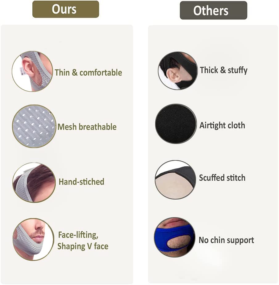 - RISK-FREE SLEEP GUARANTEE: Keep using your anti snoring chin strap if you like, get refunds or replacements within 30 days if you dont like. Includes 2 chin strap for snoring (1 primary + 1 backup) for long-term use. Customer support with 12-hour response time. Feel the confidence of having a "sleep safety net" whether youre keeping the silky-soft 2 chin straps or gifting the spare to your snoring best friend.