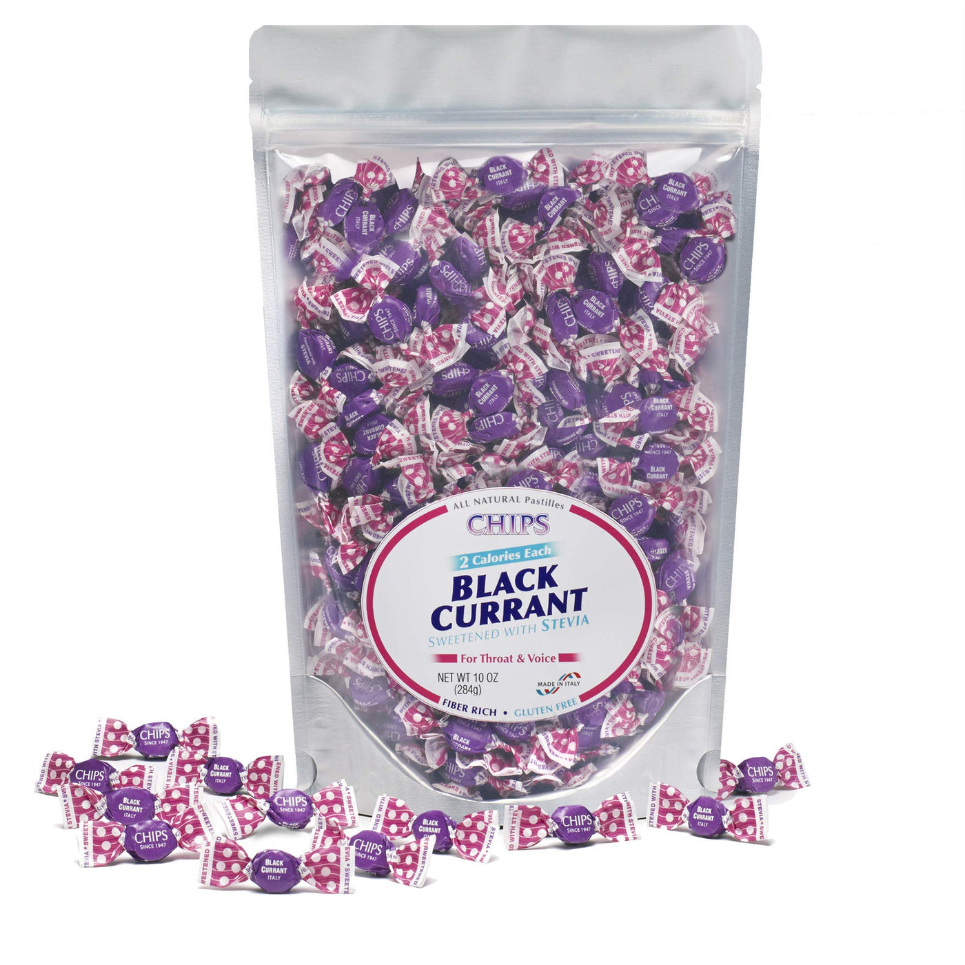 Chips BLACK CURRANT with STEVIA, 10 oz. “Share” Pack - Classic Italian Pastilles
