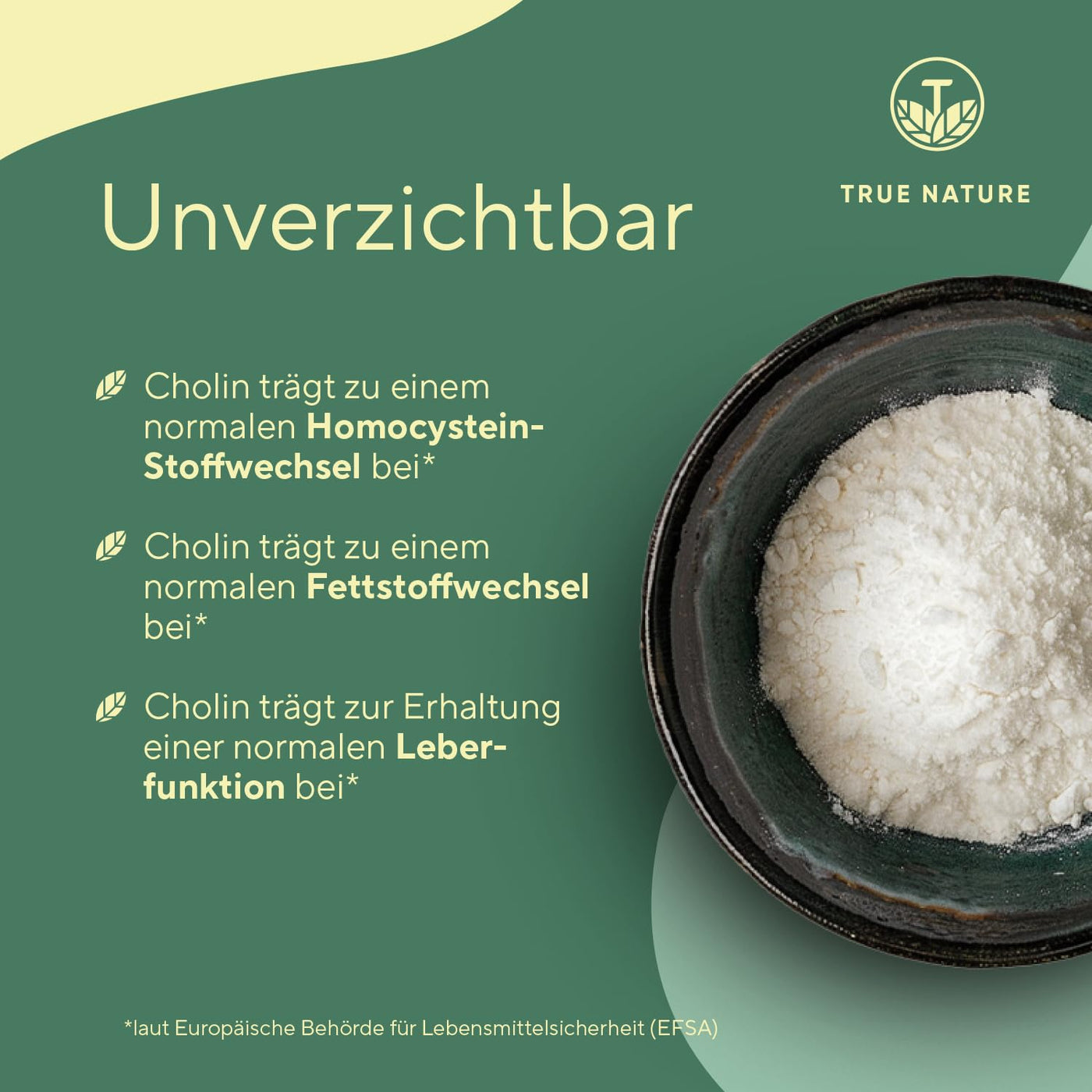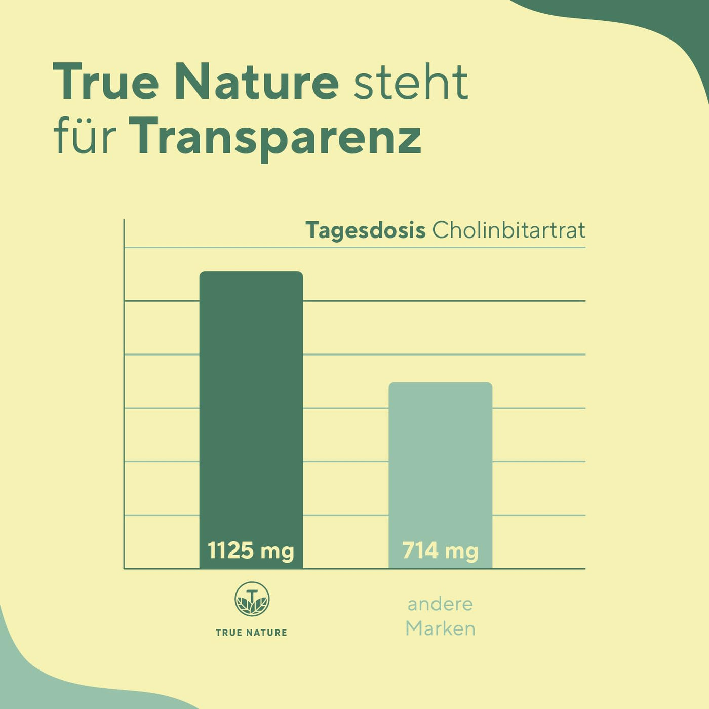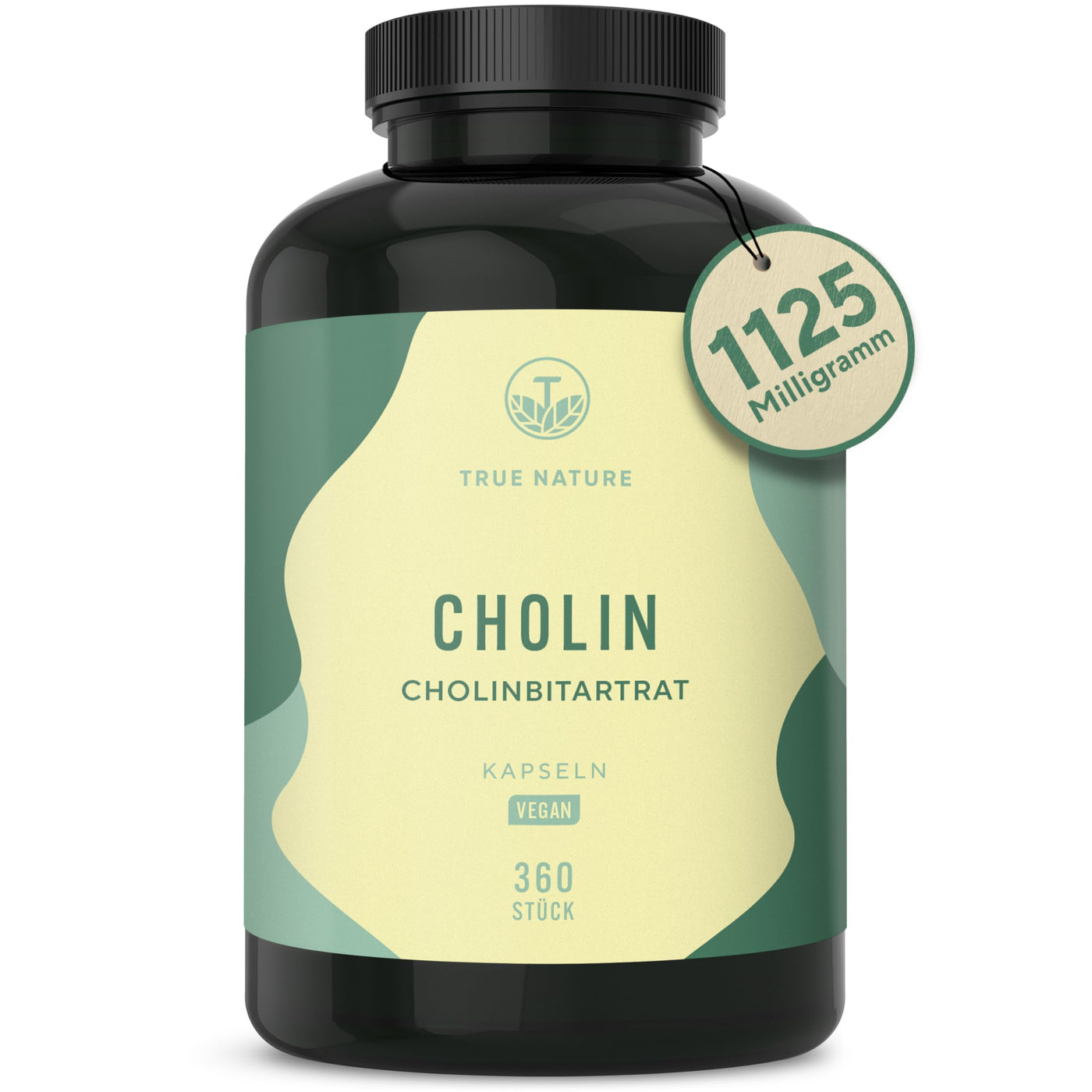 Choline capsules - High dosage: 1125mg - 360 capsules (4 months) - Choline bitartrate - *Liver treatment, homocysteine & fat metabolism (EFSA) - Vegan, German production - TRUE NATURE® 216 g (pack of 1)