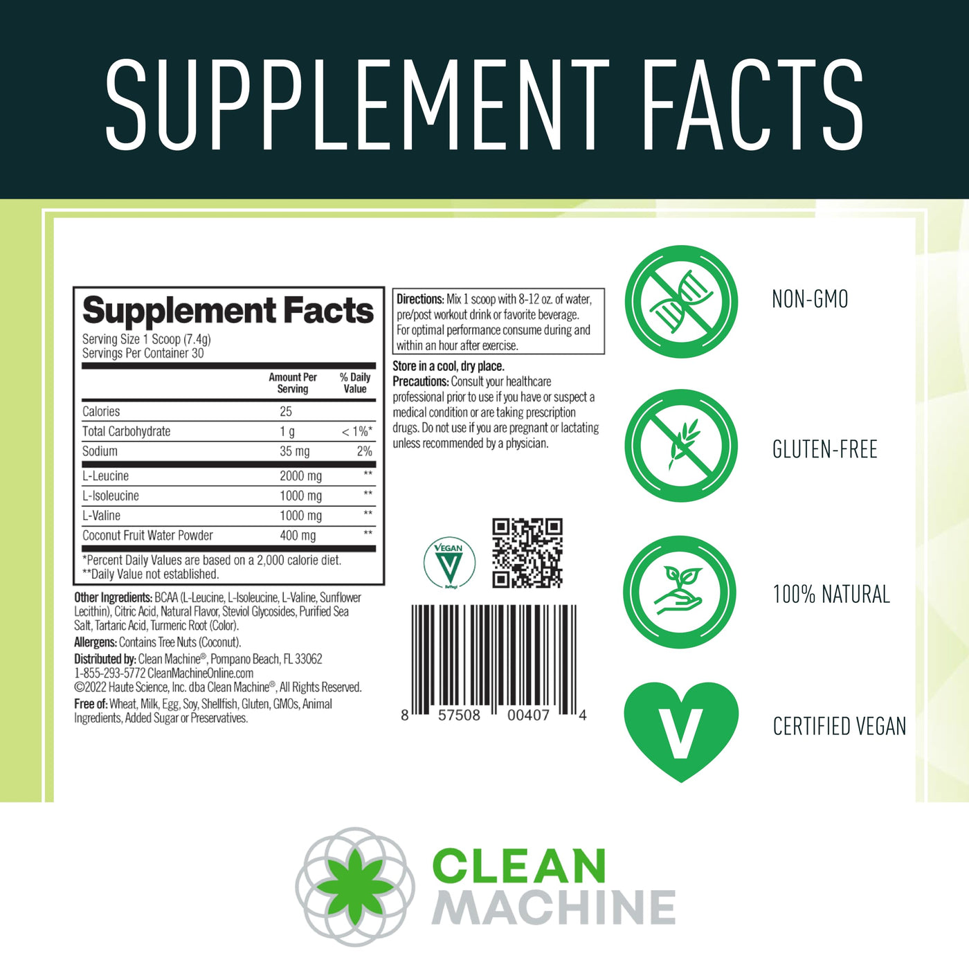 Clean BCAA - 2:1:1 Food Sourced BCAAs Powder & Coconut Water Electrolytes Recovery & Amino Energy Supplement - Award Winning Vegan Amino Acid Supplement - 30 Servings - Lemonade 30 Servings (Pack of 1)