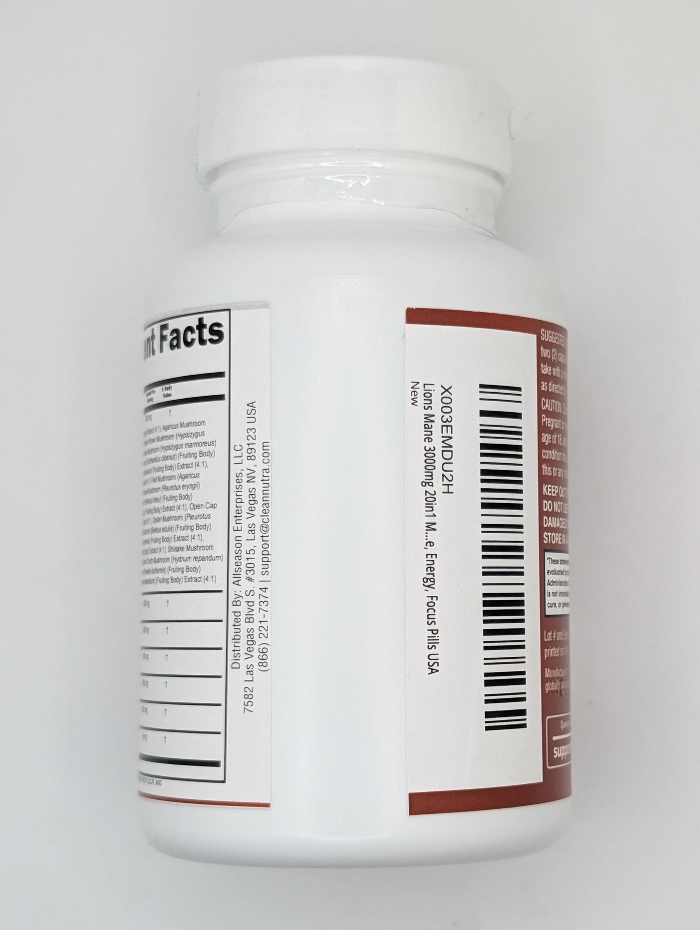 Clean Nutraceuticals Lions Mane 20in1 Mushroom Supplement with Turkey Tail Reishi Cordyceps Chaga Maitake Meshima Poria Cocos Shiitake Oyster Porcini Enoki - 1 Pack