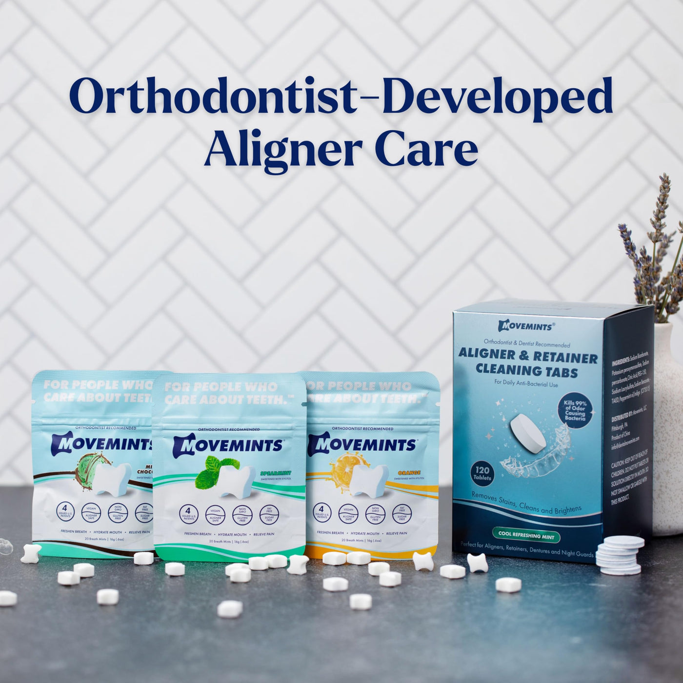 - USE MOVEMINTS INSTEAD OF ALIGNER CHEWIES: Seat aligners and keep them in place with an edible, more hygienic aligner accessory than chewies. Avoid the rinsing, removing, bad taste, nasty residue, and plastic of a chewy. Movemints mints are hassle-free and dissolve while freshening breath and eliminating dry mouth