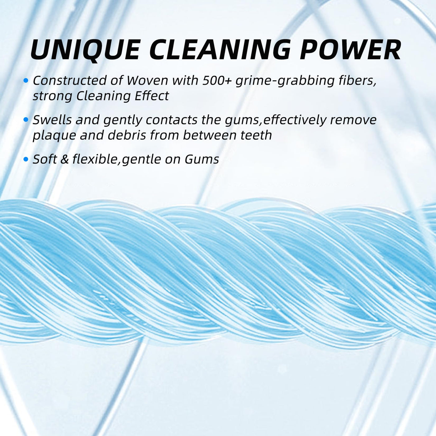 - Woven with 500+ dirt-attracting fibers for effective plaque removal.
