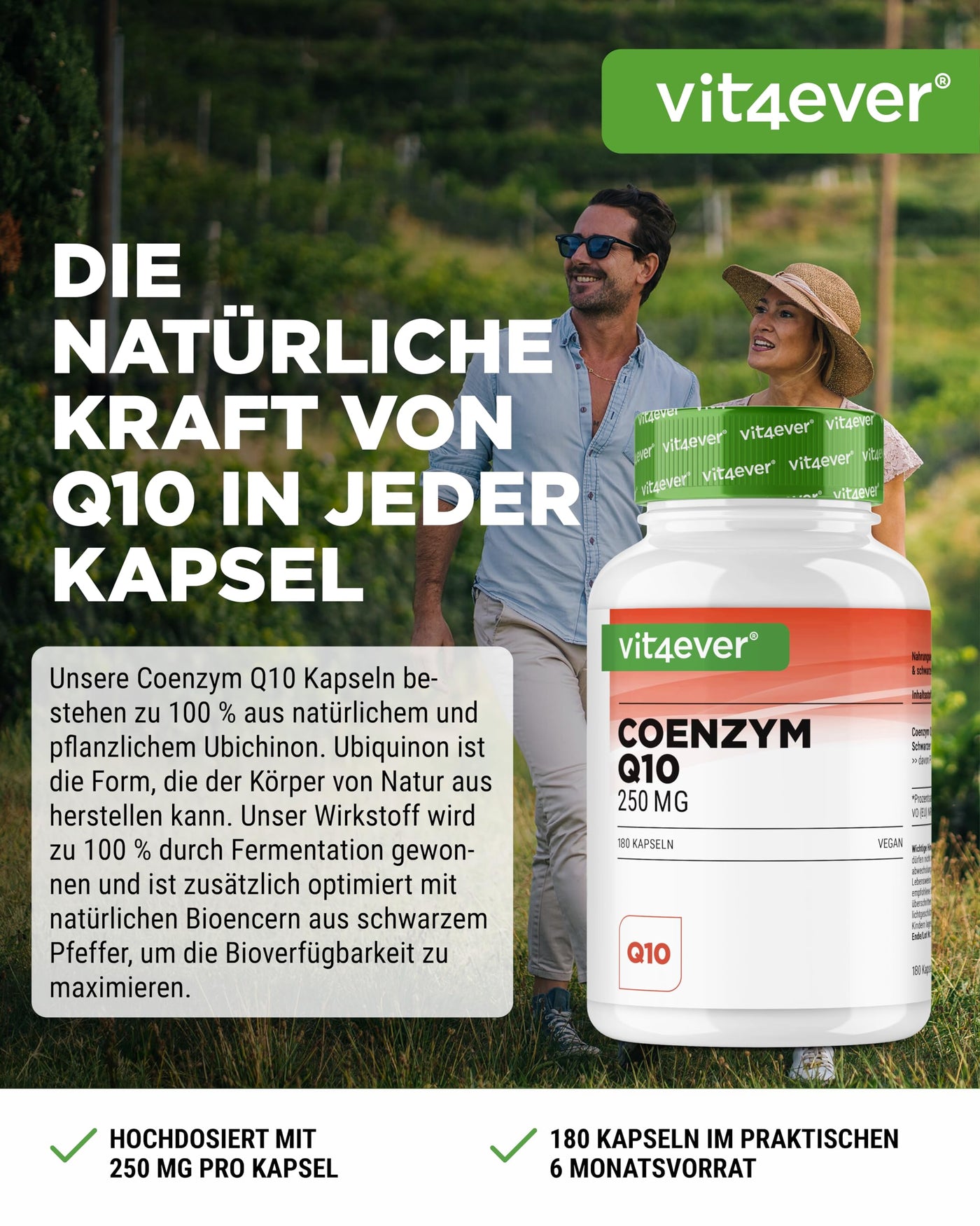 - OPTIMIZED BIOAVAILABILITY: Our Q10 capsules contain natural black pepper extract with a piperine content of 95%. Black pepper is considered a natural bio-enhancer and can improve the effect of Q10.