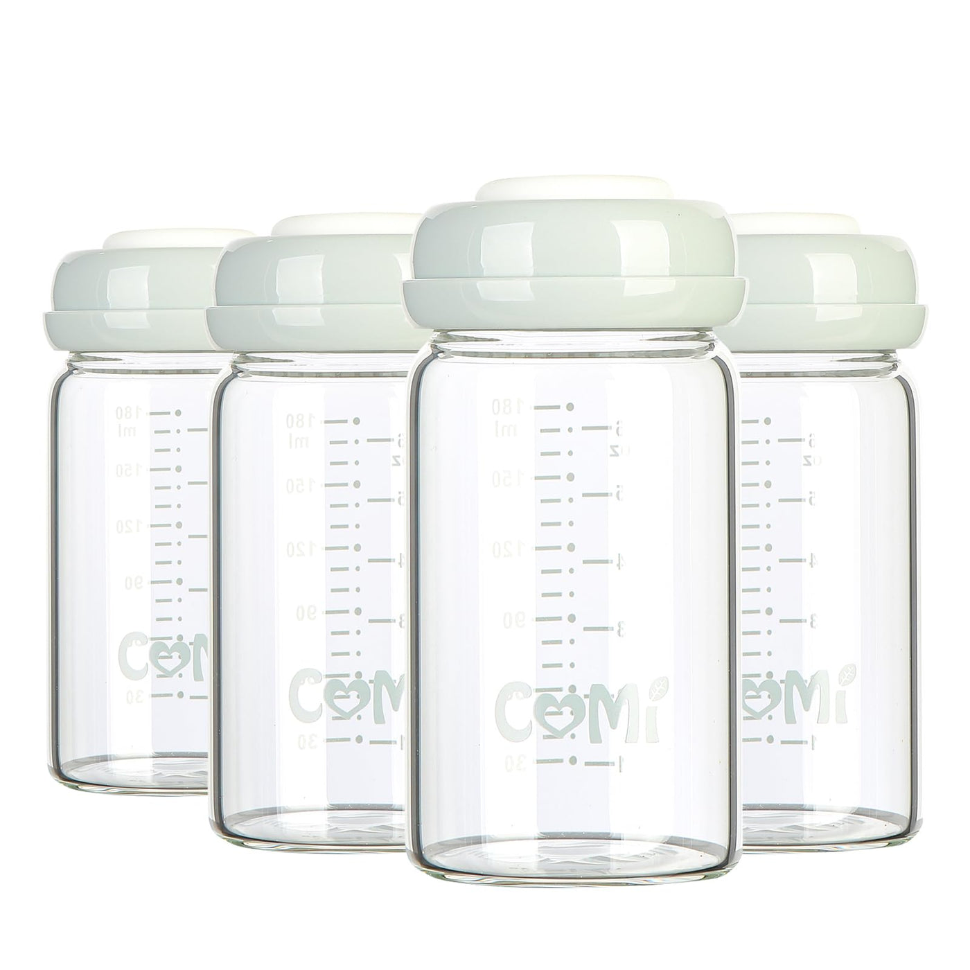 COMI Wide Neck Glass Breastmilk Collection n Storage Bottle, 4 Packs, 6oz with Screw Ring Sealing Disk; Re-markable Sealing Disc. BPA Free, Fits Breast Pumps & Nipples (4 Gray Lids) 180ml 4GRAY