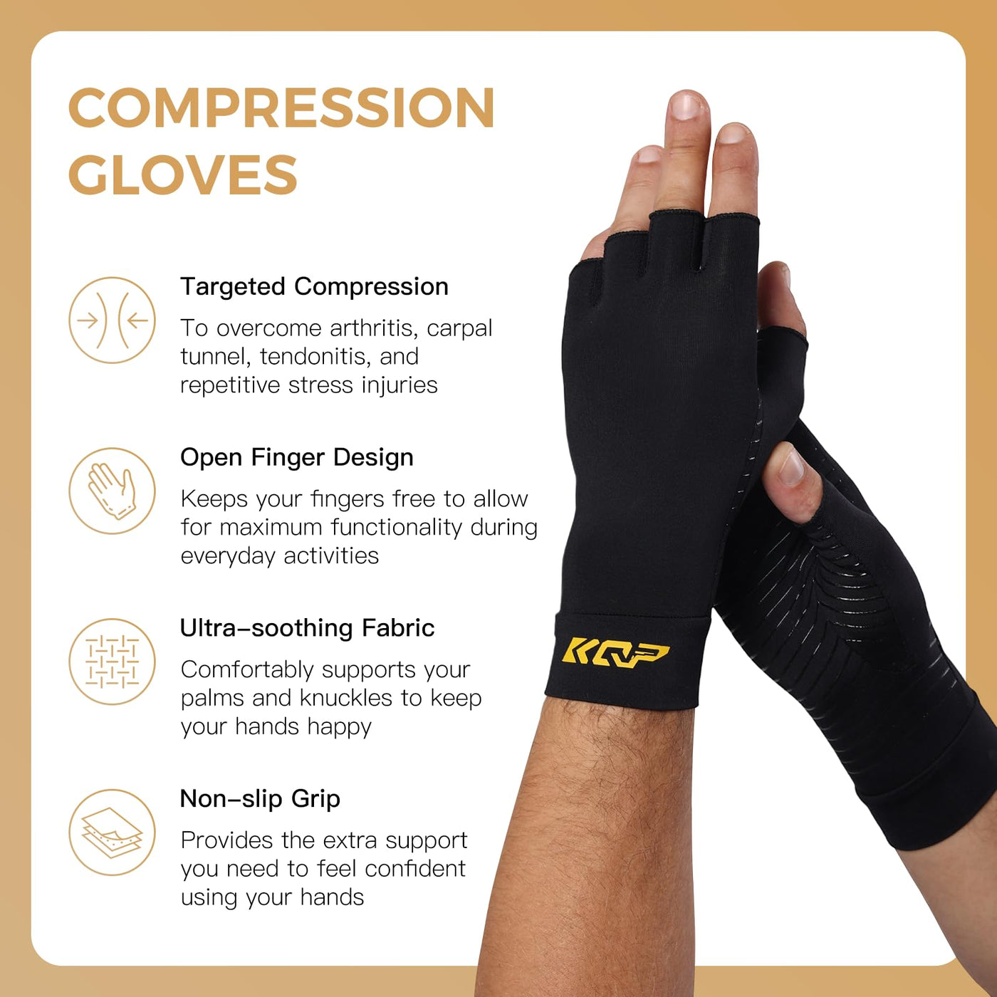 Compression Gloves For Pain Relief,1 Pair, Copper Infused Arthritis Glove, Half-finger & Whole-finger