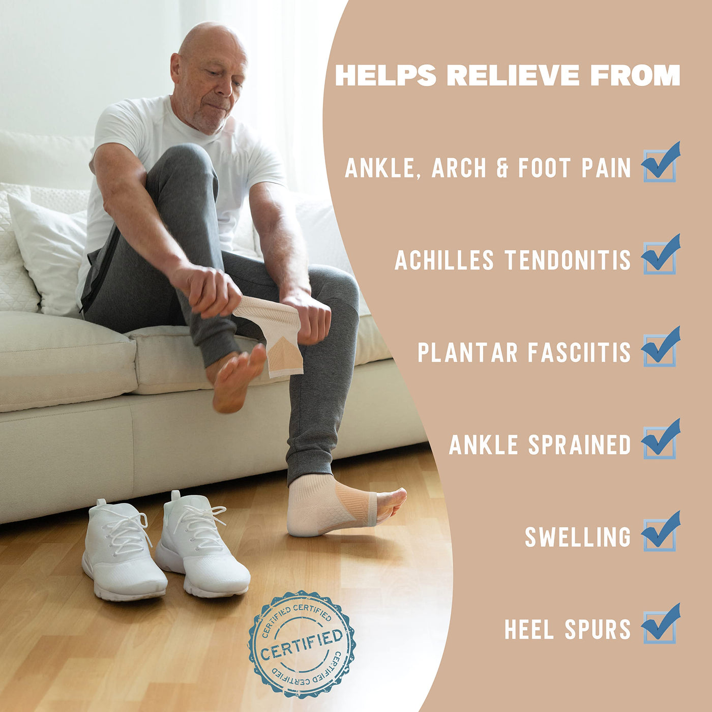 - Keskale ankle brace for women and men provide targeted support and pain relief for those suffering from plantar fasciitis, neuropathy, and achilles tendonitis. Recommended by doctors and trainers, these plantar fasciitis socks can improve blood circulation and reduce swelling.