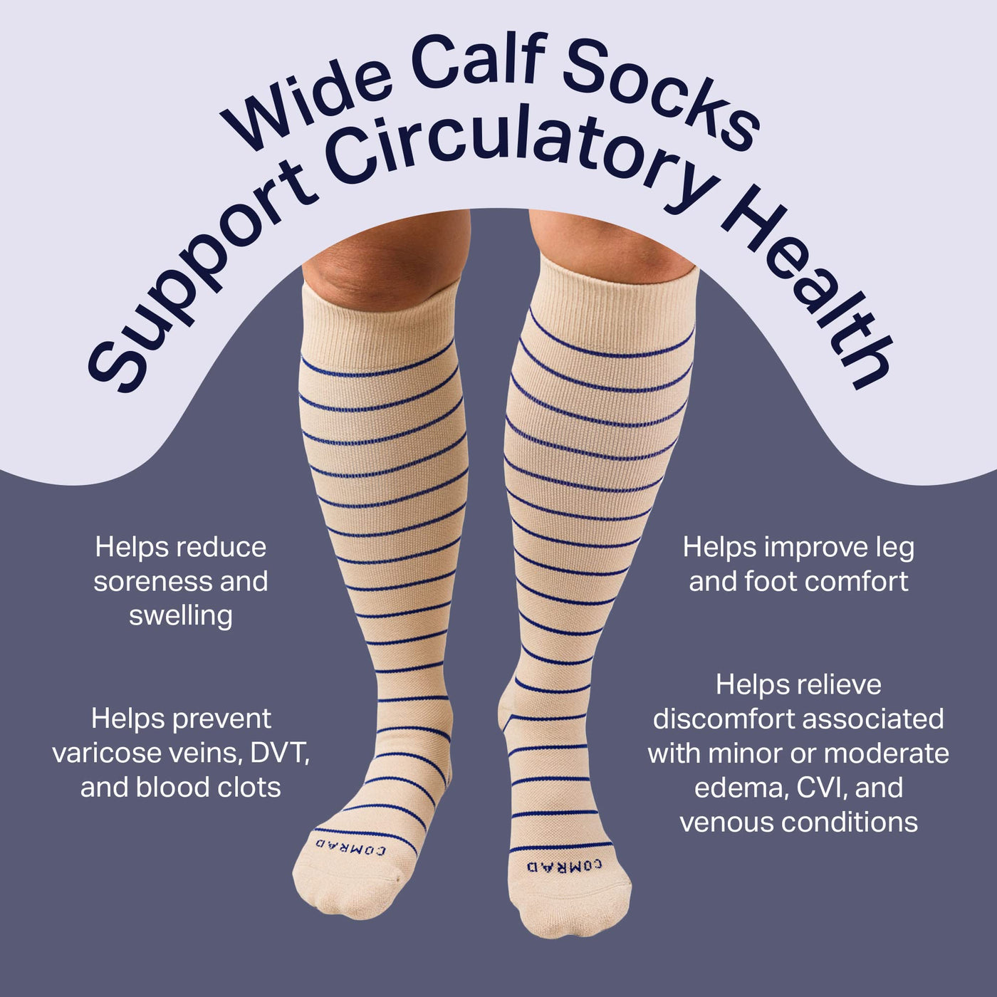 Comrad Knee High Compression Socks for Wide Calf - Thin, Breathable Premium Support Socks for Pregnancy, Athletes & More