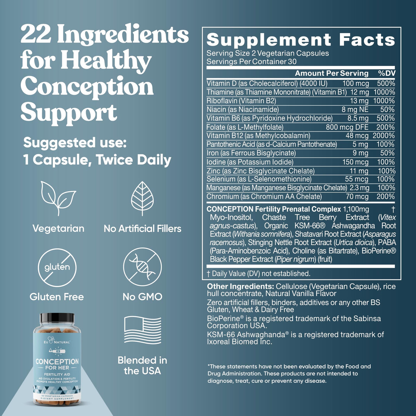 Conception Fertility Supplements for Women – Aids Ovulation, Hormonal Balance, & Regular Cycles – Prenatal Vitamin Support with Myo-Inositol, Folate, Folic Acid, Vitex – 60 Vegetarian Soft Capsules 60 Count (Pack of 1)