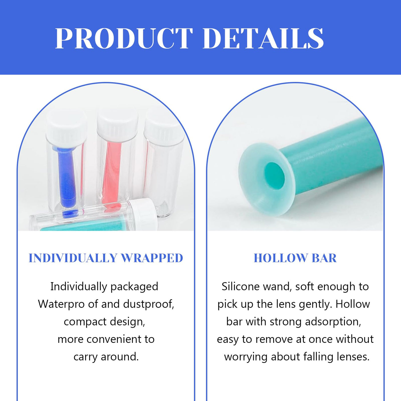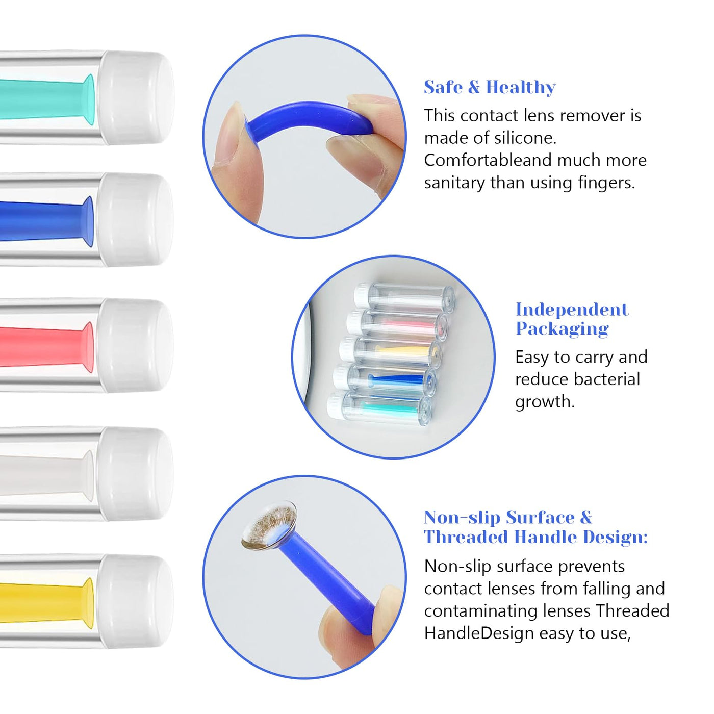 - Contact lens sucker Hard lenses with anti-slip surface designThe contact lens sucker surface has been specially treated with anti-slip treatment to ensure stable operation even in humid environments. Contact lens sucker soft lenses prevent the lens from accidentally slipping during installation.