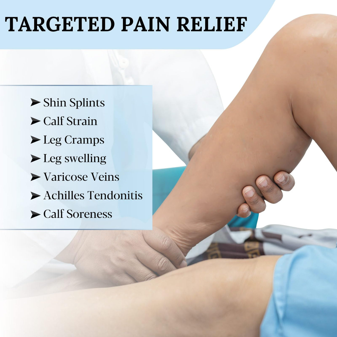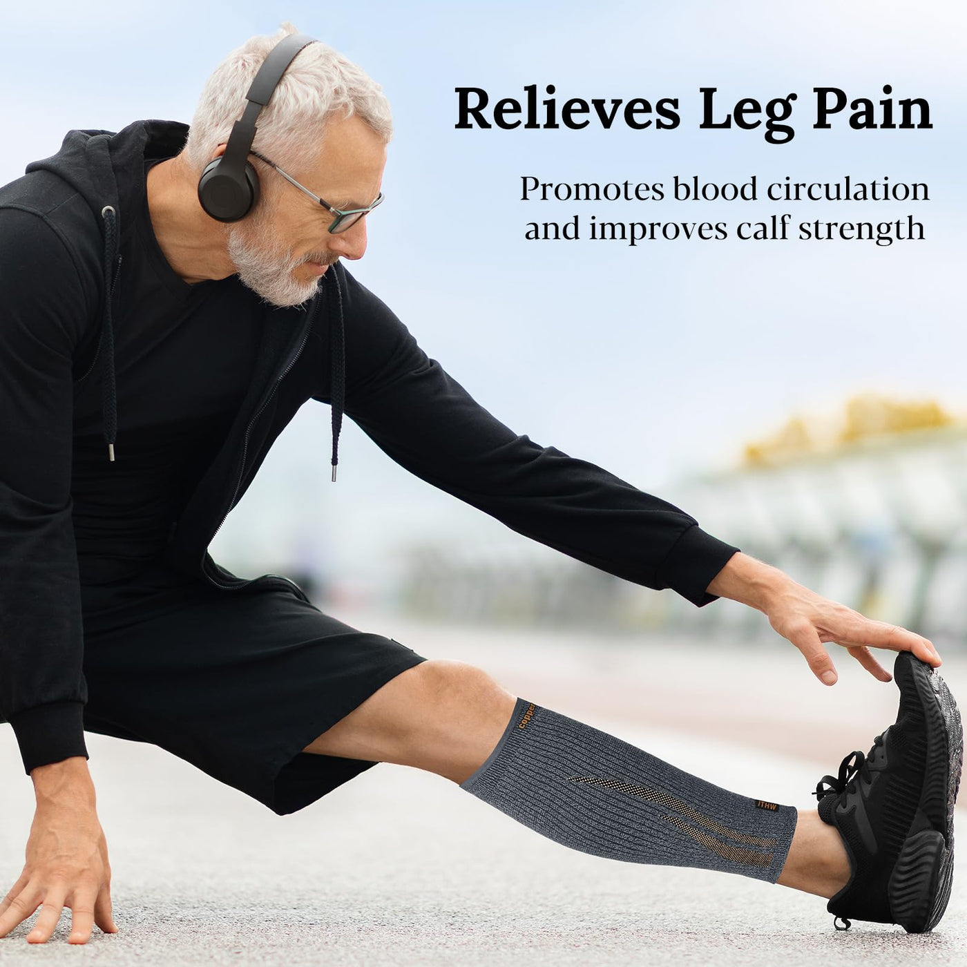 - Graduated Compression: The compression leg sleeve provides targeted leg support by applying varying degrees of compression to the calf, shin and Achilles tendon, which improves circulation and relieves leg pain.