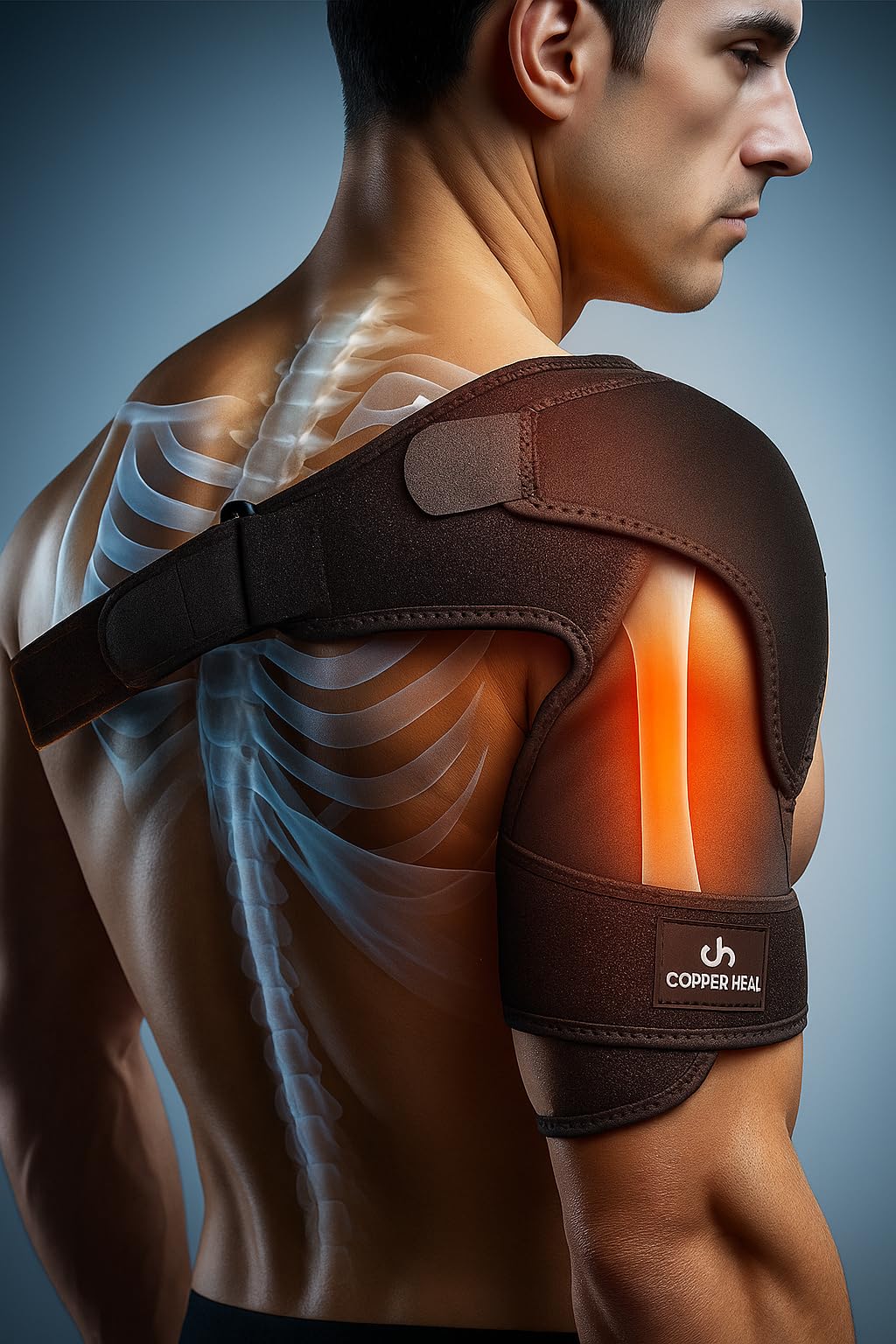 - QUALITY MATERIAL: Copper heal - Experience both compression and stability to support your body in various activities. The 4-Way stretch design improves your range of motion, allowing for fluid movement and offering relief from conditions such as frozen shoulder, AC joint problems, rotator cuff tears, bursitis, labrum tears, tendonitis, stiff joints, fractured humerus bone, and post-op SLAP surgery.