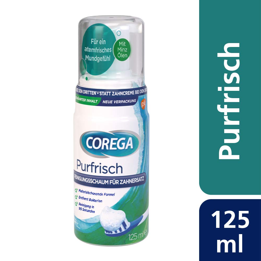 Corega Purfrisch cleaning foam for removable dentures/third teeth, 1x125ml (pack of 3) 125 ml (pack of 3)