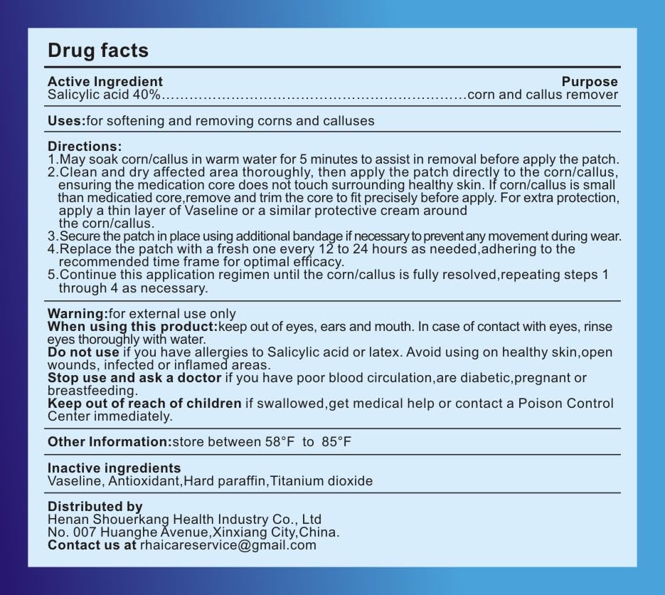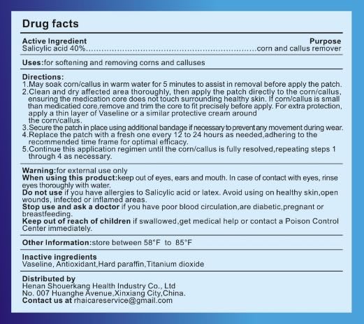 - Fast acting :Corn Remover Pads with 40% Salicylic Acid provide powerful wart, corn and callus removal .If it is a regular small shallow corns or calluses, just after few times uses, the corns or calluses will turn white and fall off. If the corns are deep or large, they will fall off even with a few more days of use.
