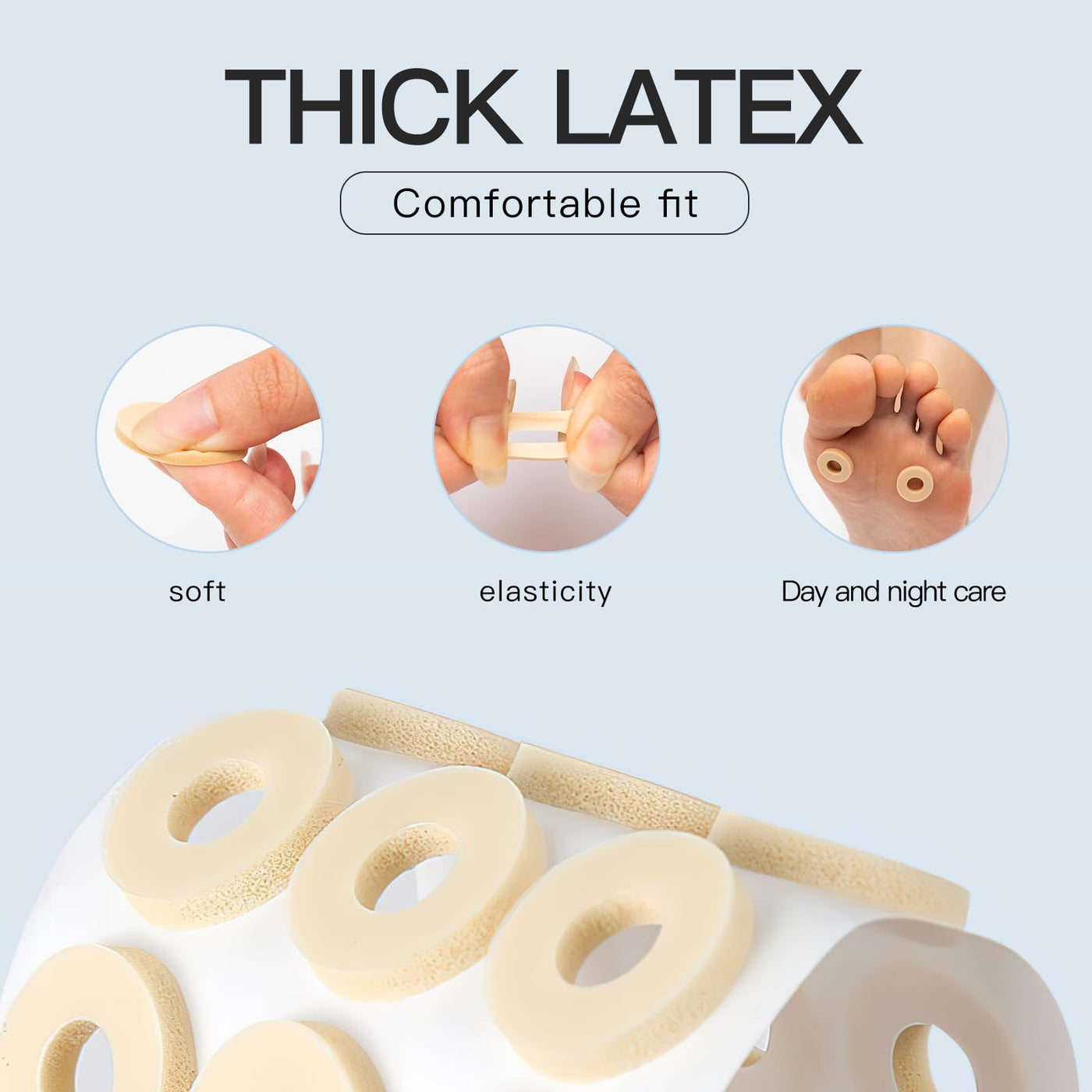 - Soft latex foam material: The patches are made of high-quality latex foam that is gentle and comfortable on the skin. This material ensures that the stressed areas are relieved while at the same time promoting healing