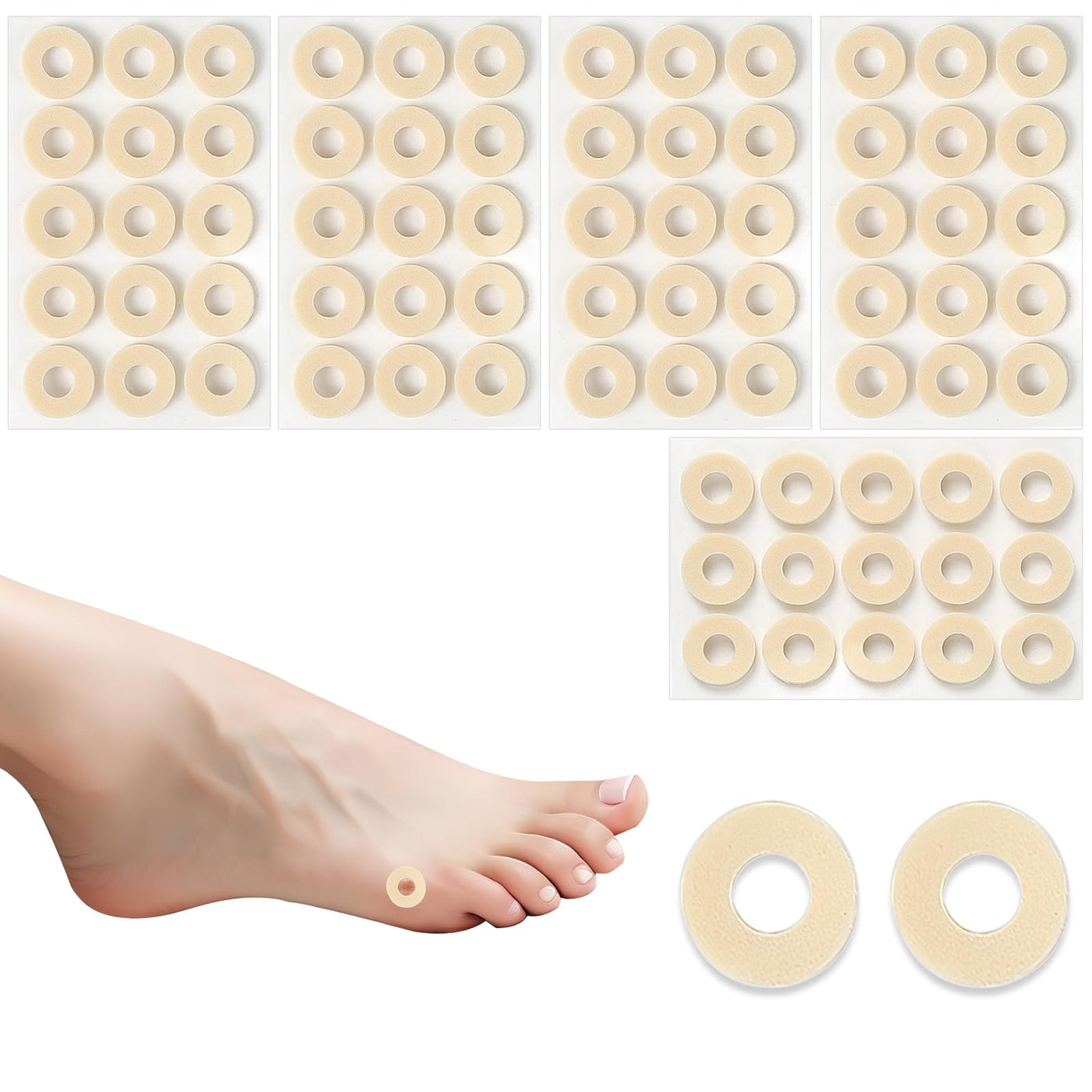 Cosmeria Pack of 75 Corn Plasters for Toes Self-Adhesive Latex Foam Foot Cushion Pain Protection for Men Women Feet Toes Small Oval