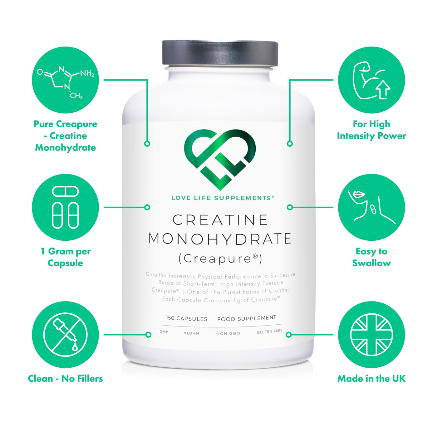 Creapure� Creatine Monohydrate Capsules (1 Gram per Capsule) | 150 Capsules (not Powder or Tablets) | 30-50 Servings | Love Life Supplements - 'Clean, Effective, High Quality'