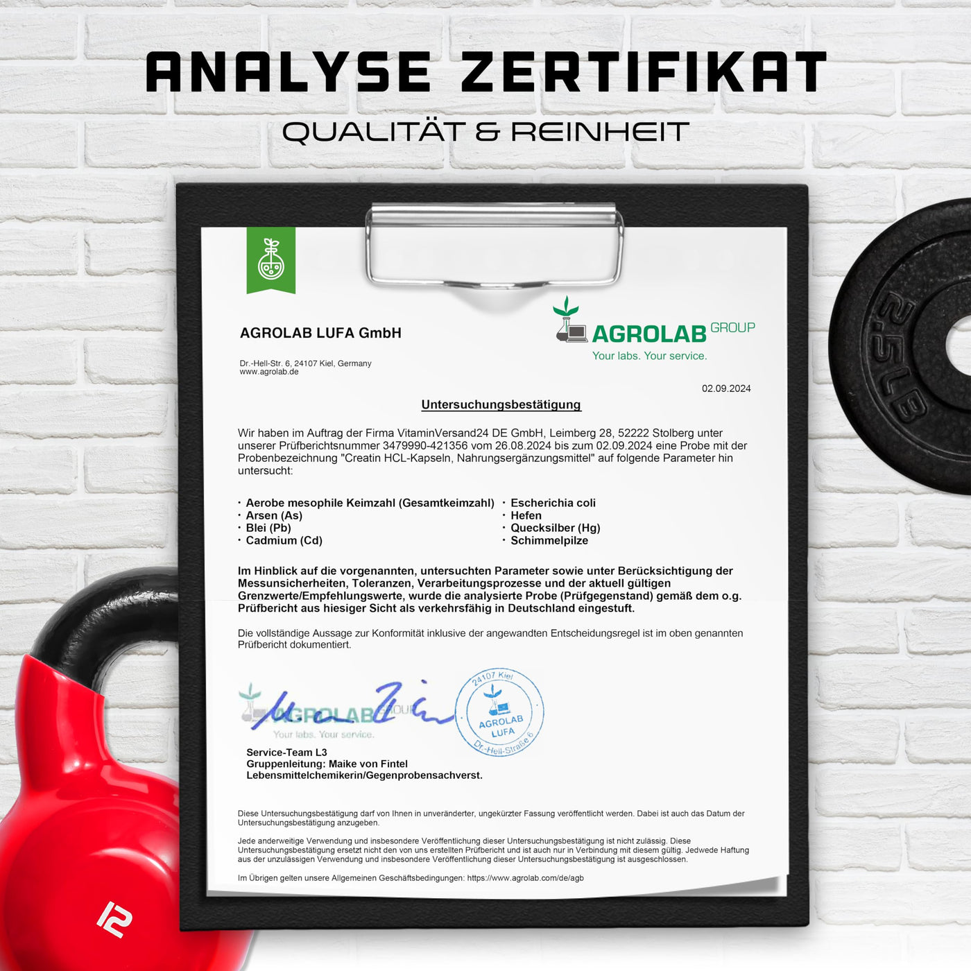 - PREMIUM CREATINE: Creatine HCL (creatine hydrochloride) is absorbed particularly well and quickly by the body compared to other creatine compounds (high absorption). Creatine HCL is also characterized by its excellent tolerance.