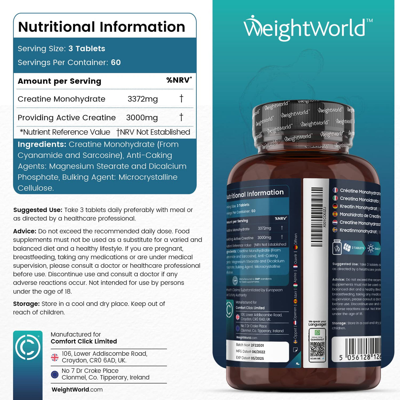 - 180 Easy To Take Creatine Monohydrate Tablets Per Bottle: Aside from just providing a potent 3000mg boost of raw Creatine per serving (1000mg per tablet), our Creatine supplement also delivers value as a single bottle contains 180 Creatine powder tablets, giving you prolonged muscle workout fuel. These pre workout powder tablets are made of only 100% natural ingredients & are free from artificial colours & flavours to ensure your safety, unlike other flavoured Creatine tablets available.