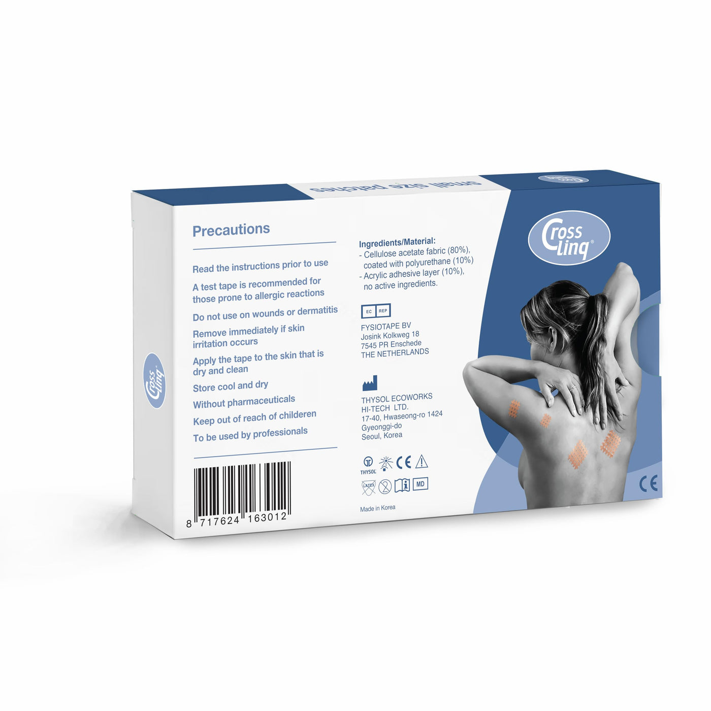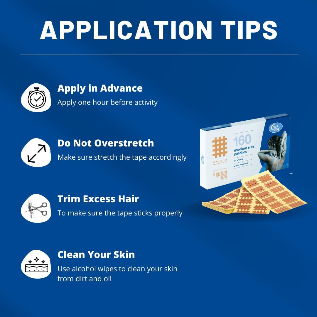CrossLinq Patches are easy peel-and-apply kinesiology tape precuts specially designed for use in relieving pressure in areas with bruising, lymph edema, and chronic pain or on acupuncture, acupressure, and trigger points. When applied to these areas, the grid pattern of the patches helps to lift and separate the skin and fascia and allow better drainage and flow of fluid to reduce pain and swelling. CrossLinq patches come from the CureTape family of products, and are made up of the same fine, premium quality cotton backed with gentle and hypoallergenic but durable and waterproof medical adhesive that allows them to stay on comfortably for up to 7 days.