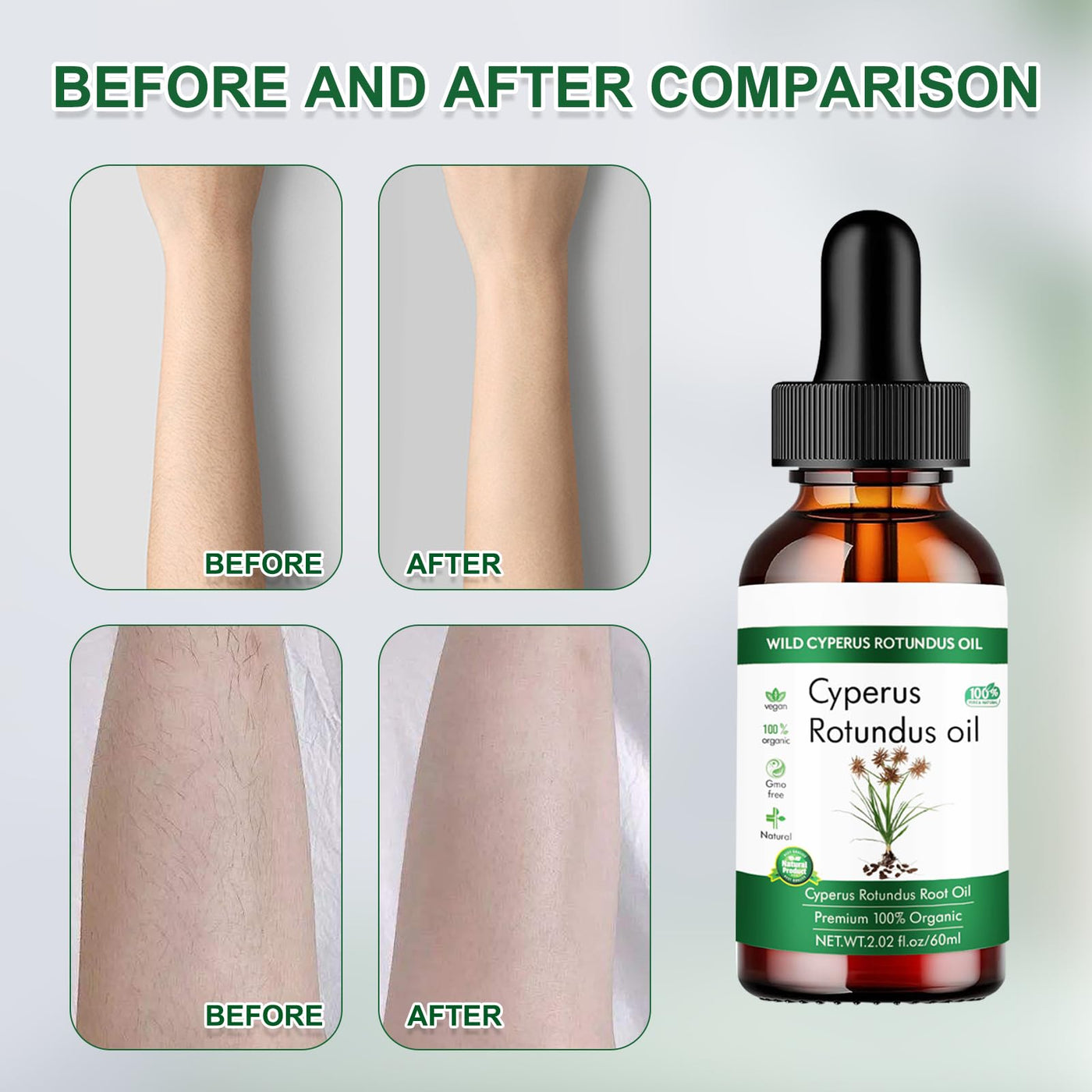 - Say goodbye to unwanted hair cyperus rotundus oil: The unique cyperus cyperus component helps to effectively reduce the frequency of hair regeneration, and cyperus rotundus can effectively prevent the reappearance of unwanted hair and relieve irritation during the growth process. With Cyperus Rotundus Oil you can easily enjoy long-lasting silky skin.