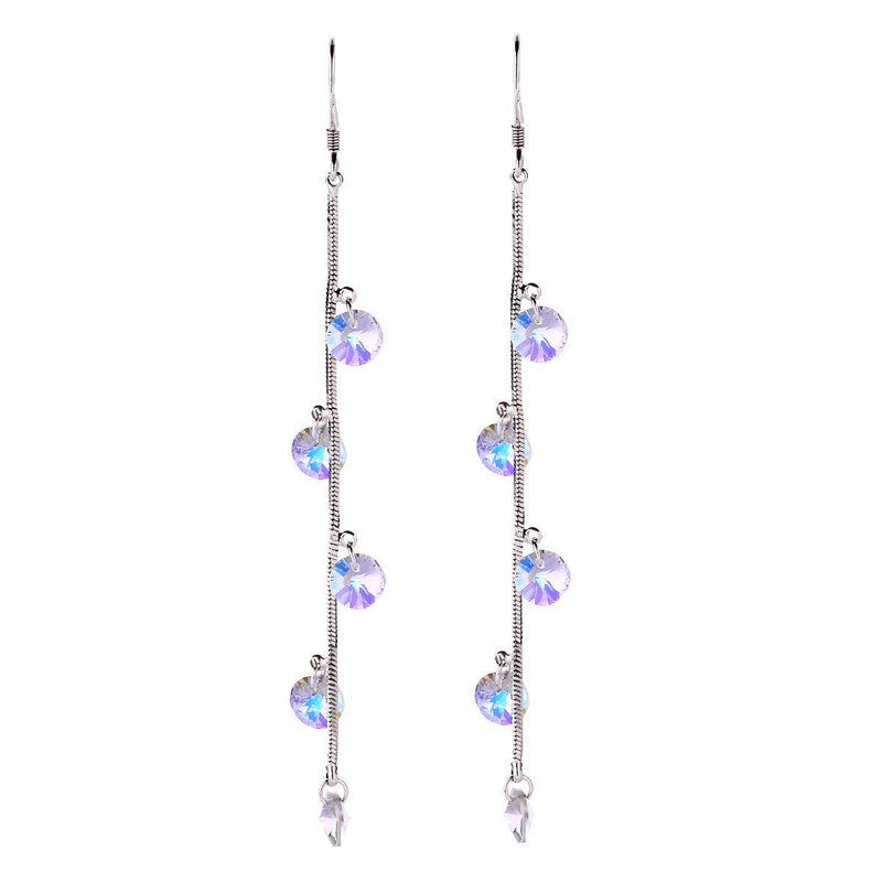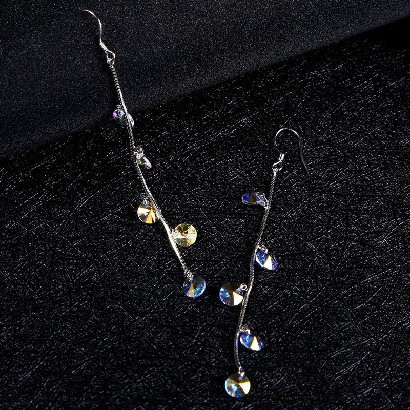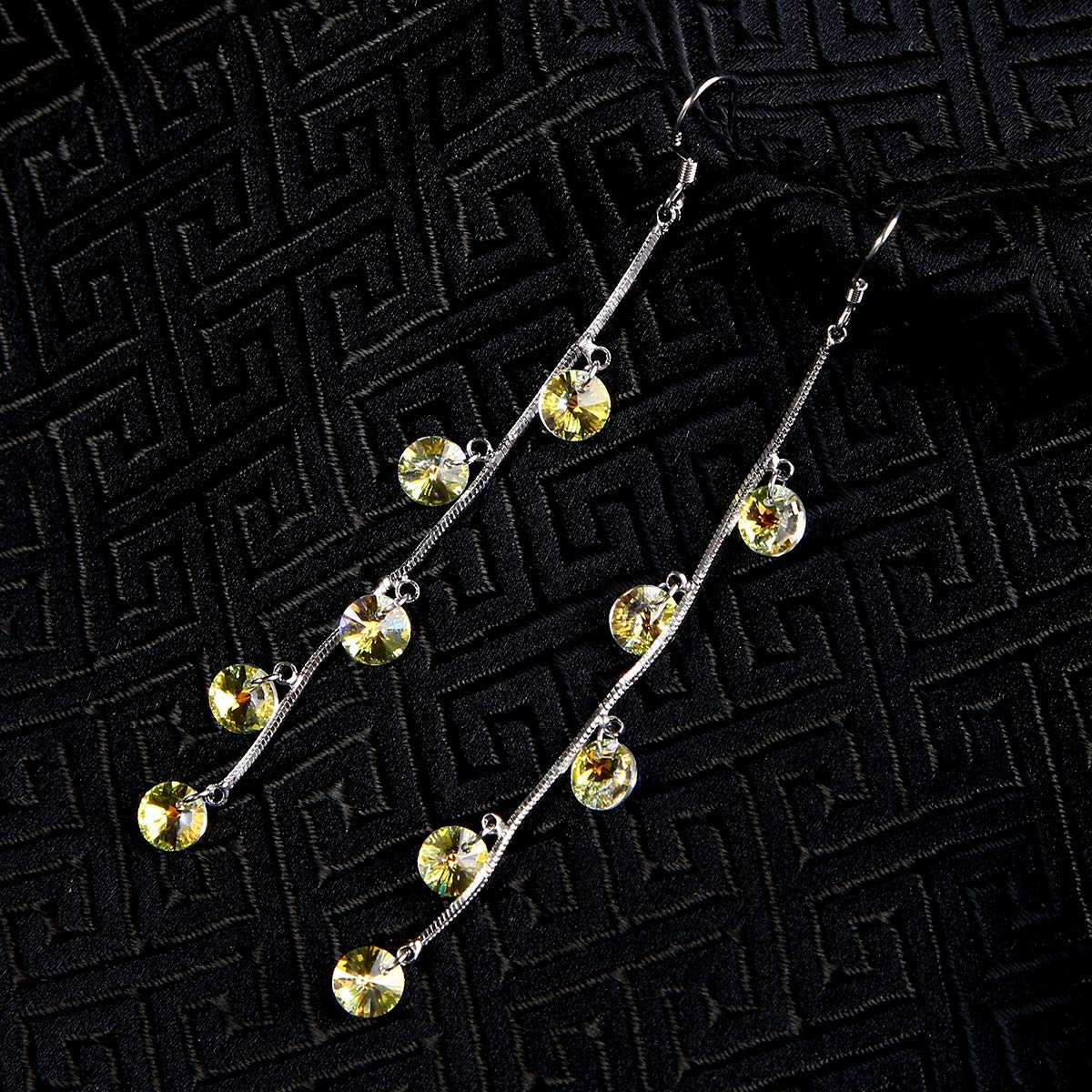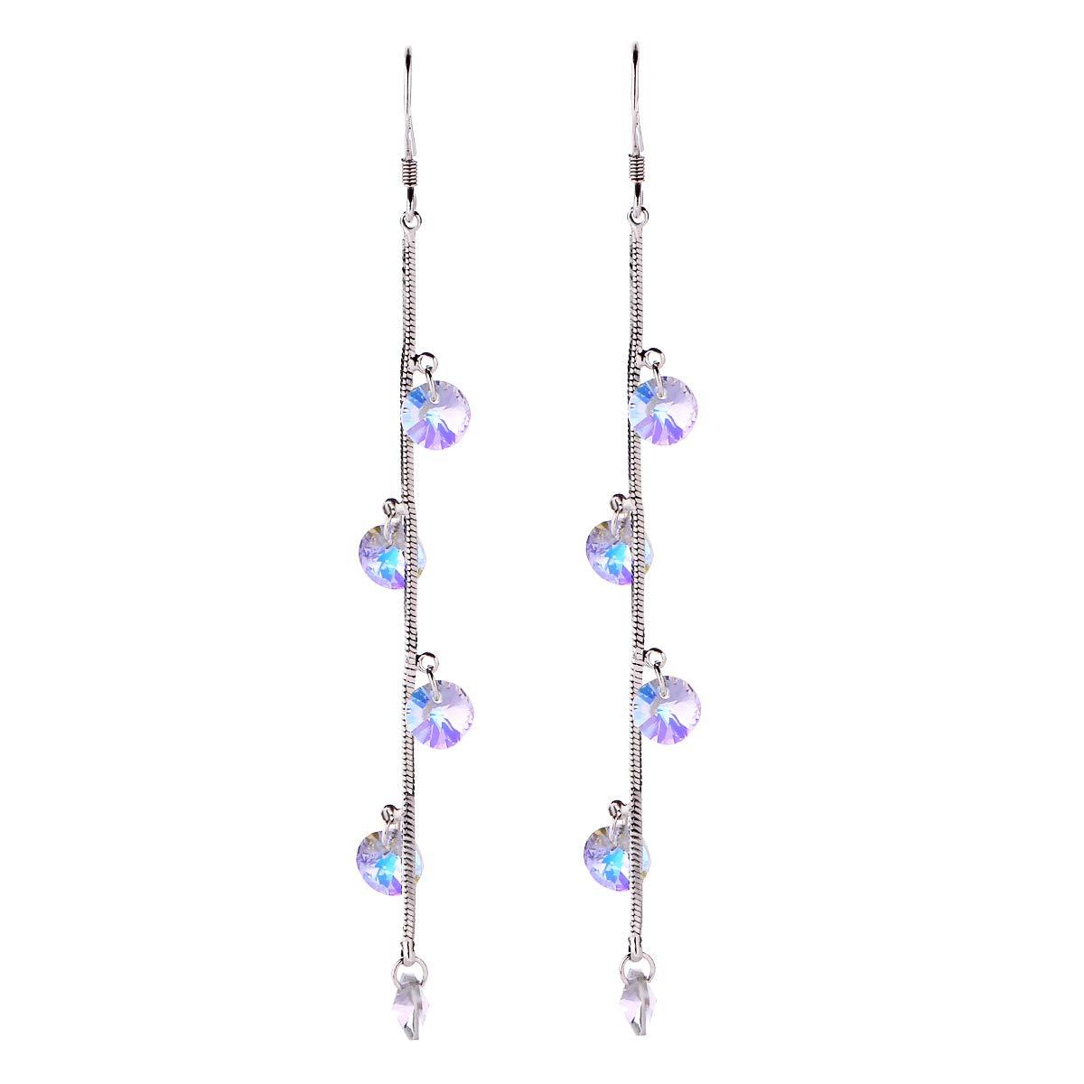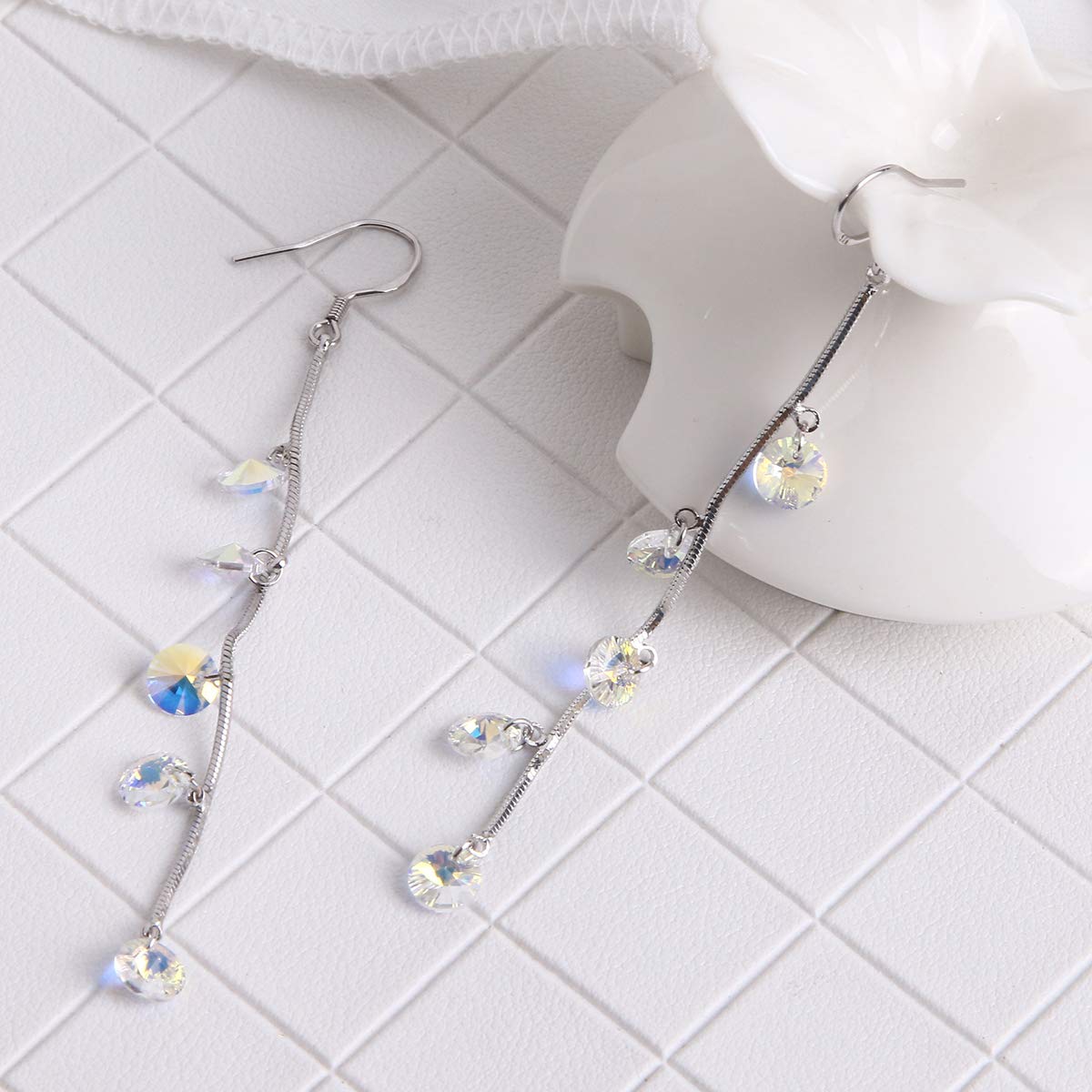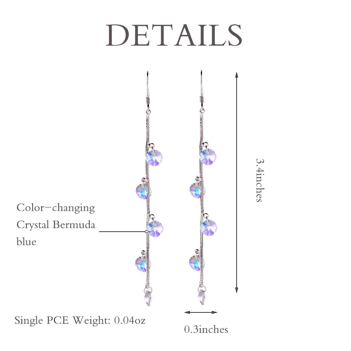 - UNIQUE DESIGN - These swarovski crystal dangle earrings are made of 925 sterling silver (stamped) with 14K White Gold Plated. Exquisite love heart shape eardrops are Selected from Genuine Swarovski Color-changing Crystals with Excellent Diamond-cut for an eye-catching sparkle. Different angle, different color