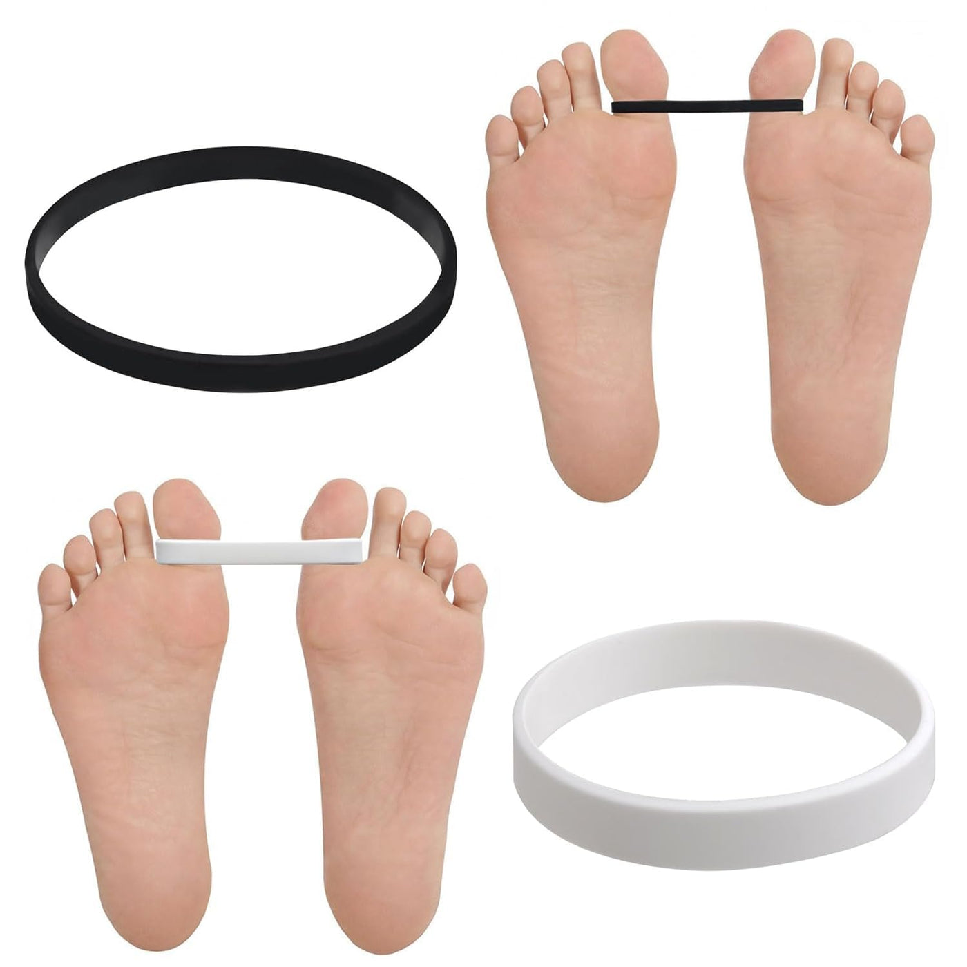 - 4PCS Hallux Valgus Training Band 2 DIFFERENT RESISTANCE, Our toe correction set includes 2 bands with different resistances. It is made of high quality, durable, medical grade elastic silicone. They last a long time even under the highest pressure