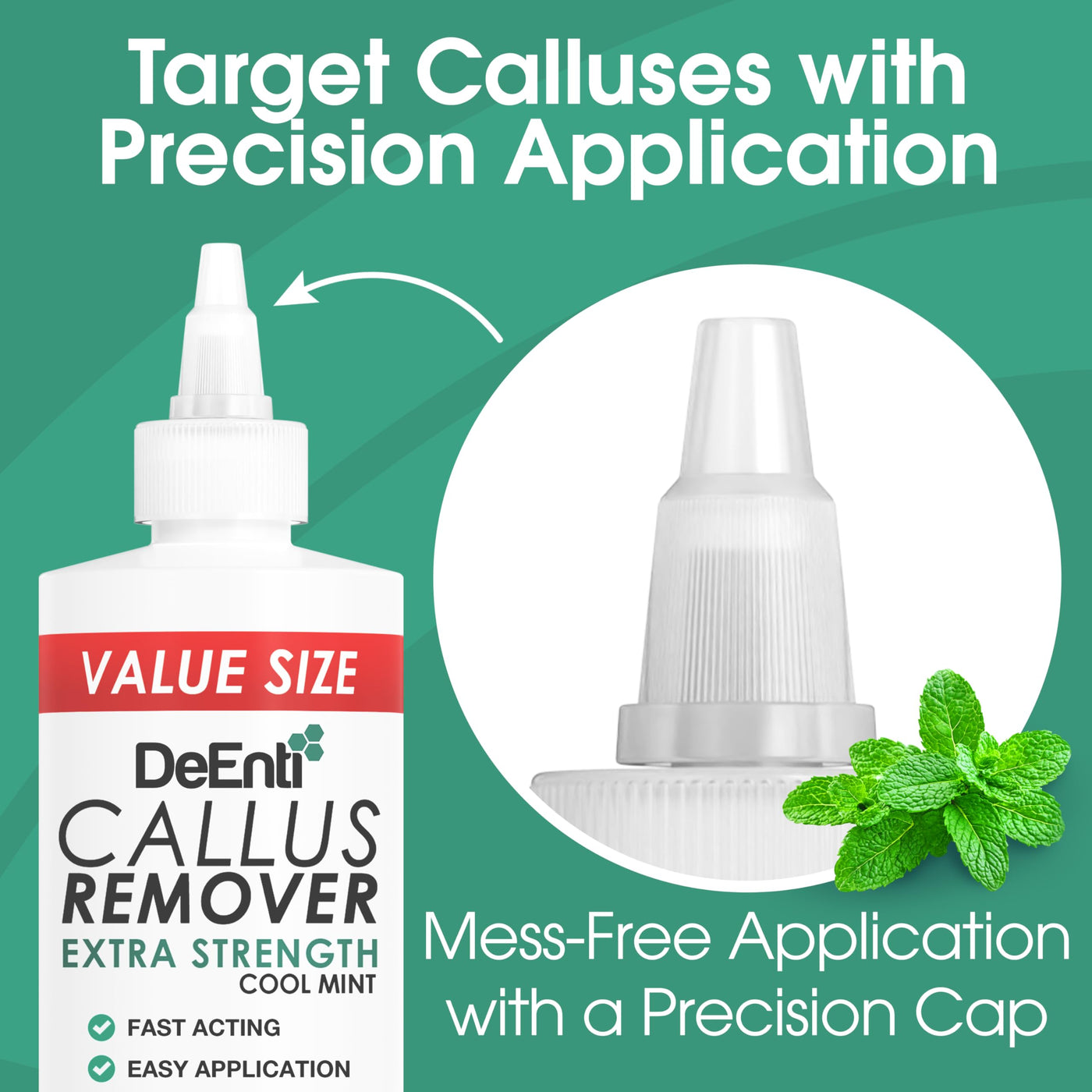 - TARGET CALLUSES WITH PRECISION APPLICATION CAP! Our cone dispense cap in combination with our thick, no-drip gel keeps the formula on affected areas of foot and heel. Safe, easy and effective, use gloves for best results, or, wash hands immediately once finished.