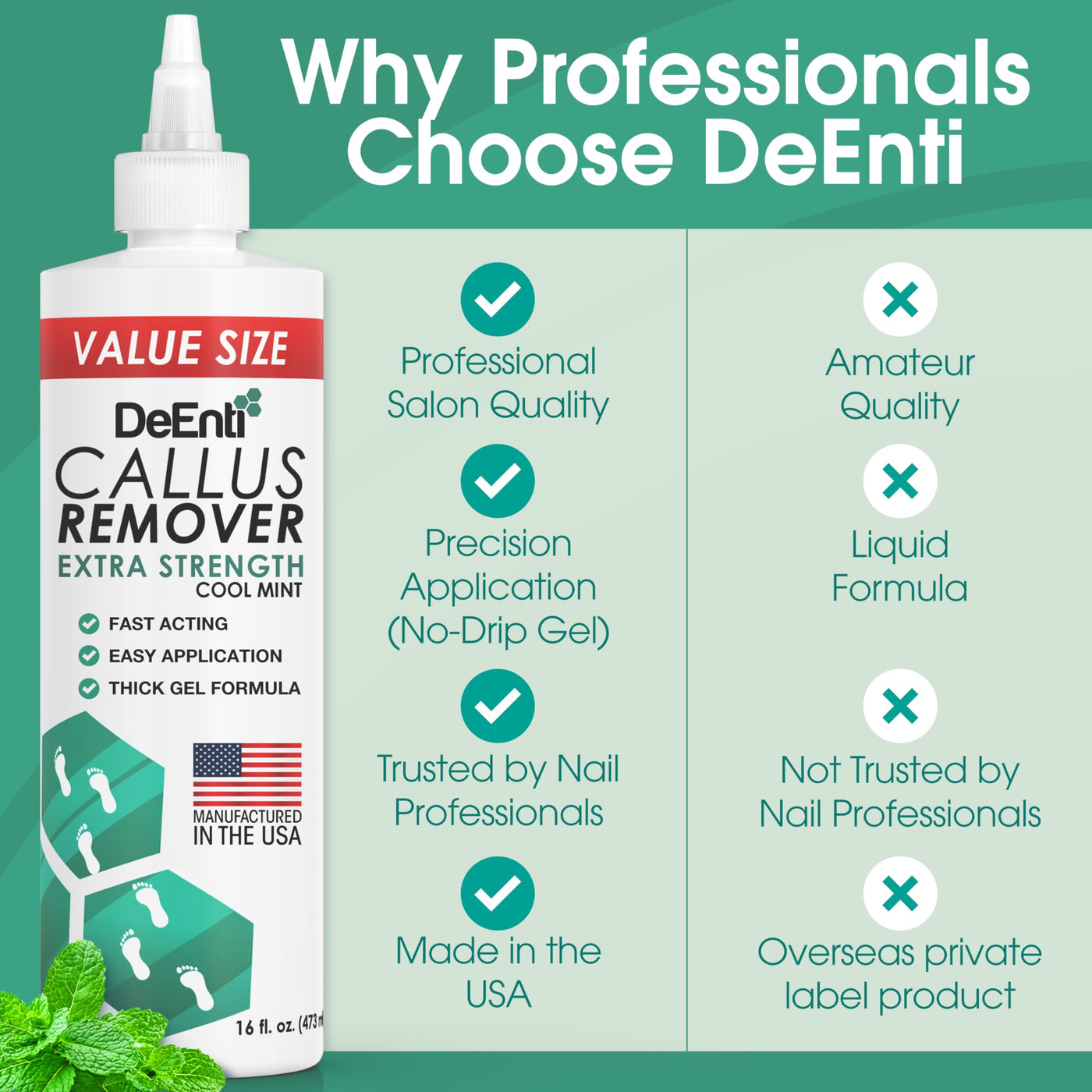 DeEnti Callus Remover for Feet, Extra Strength Foot Callus Remover Gel, 16oz Salon Grade Home Pedicure Supplies for Dry Skin, Cracked Heel, Professional Strength Foot Care, Cool Mint 1 Count (Pack of 1)