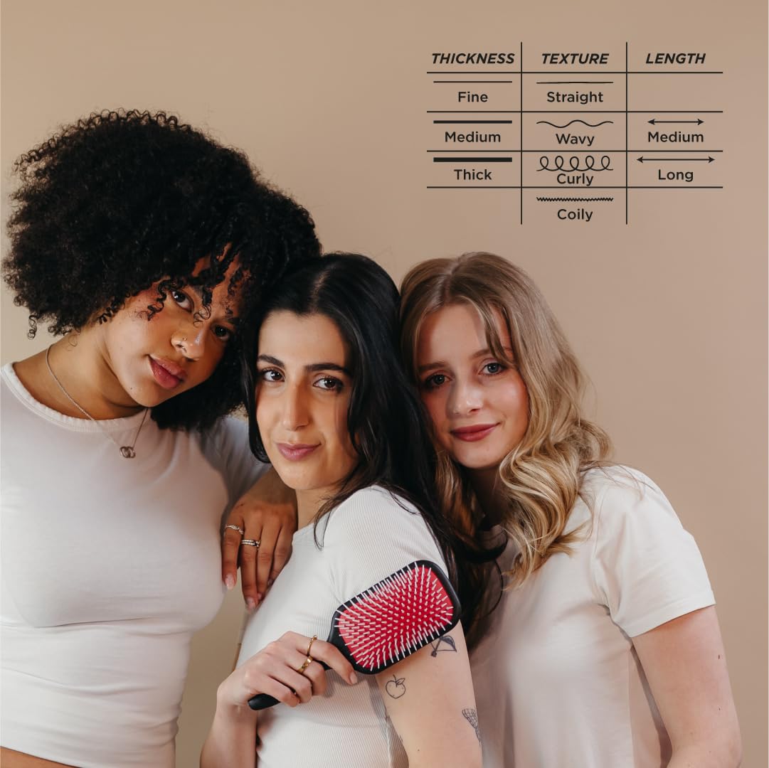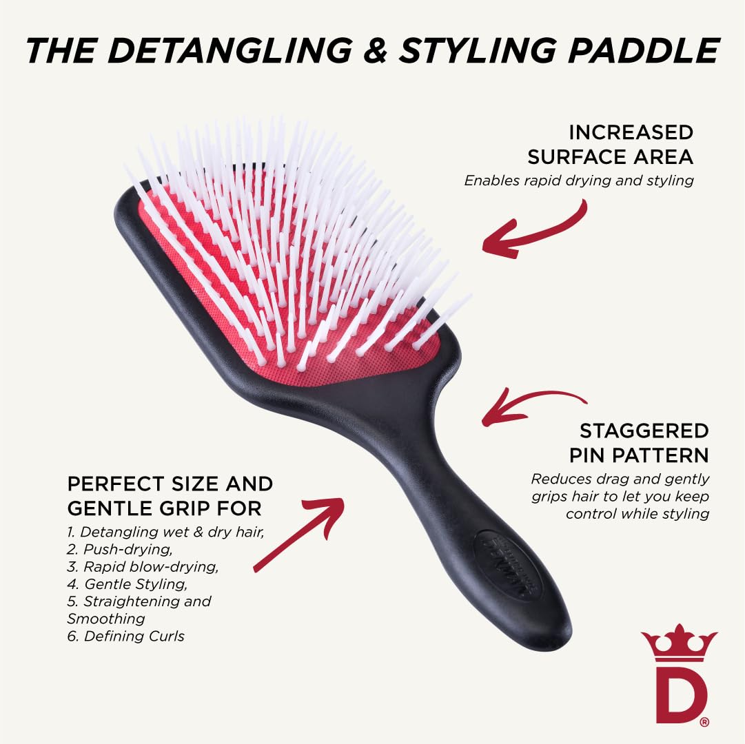 Denman Detangling & Styling Paddle Brush – Wet or Dry Hair Detangler & Styler for Curly, Coily, Straight, Thick & Long Hair – Ideal for Women & Men Black, red, white