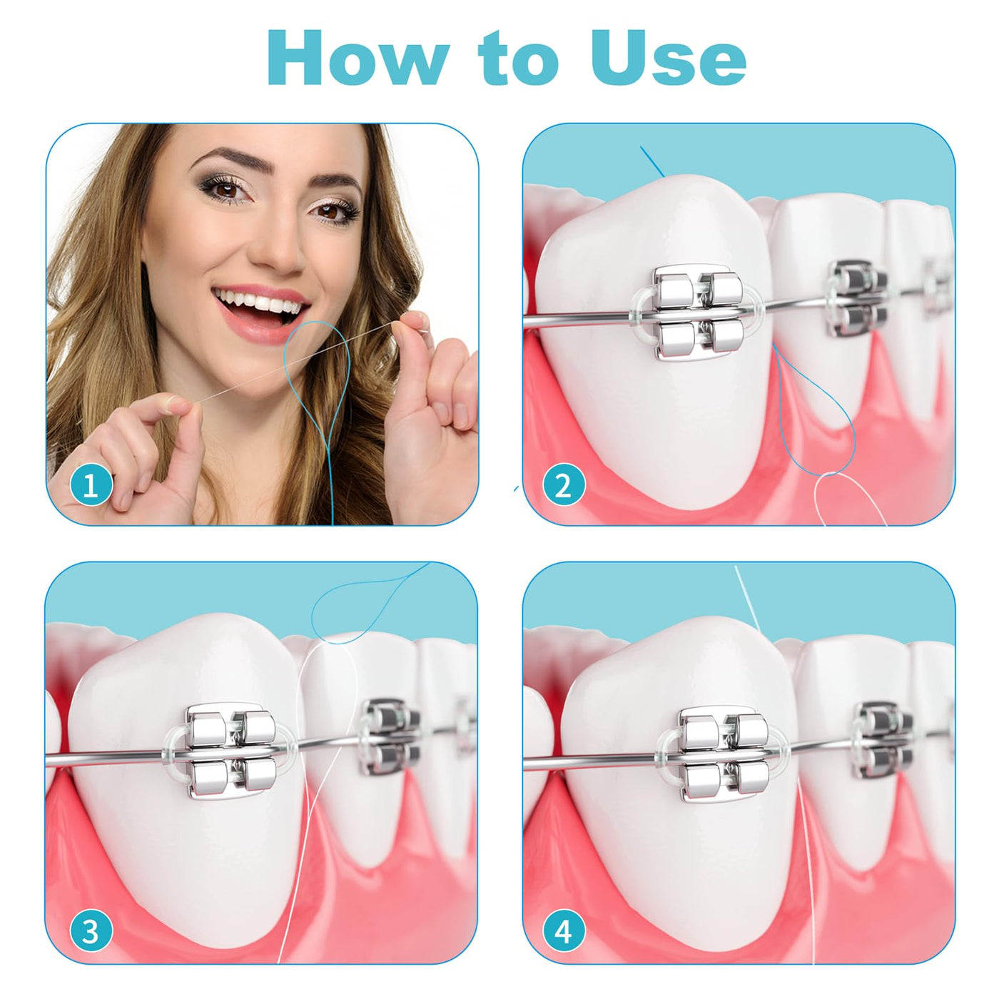 - Easy to carry This dental floss for braces comes in a portable package so you can use it at home or on the go. Use our floss threader to keep your mouth clean and healthy at all times.