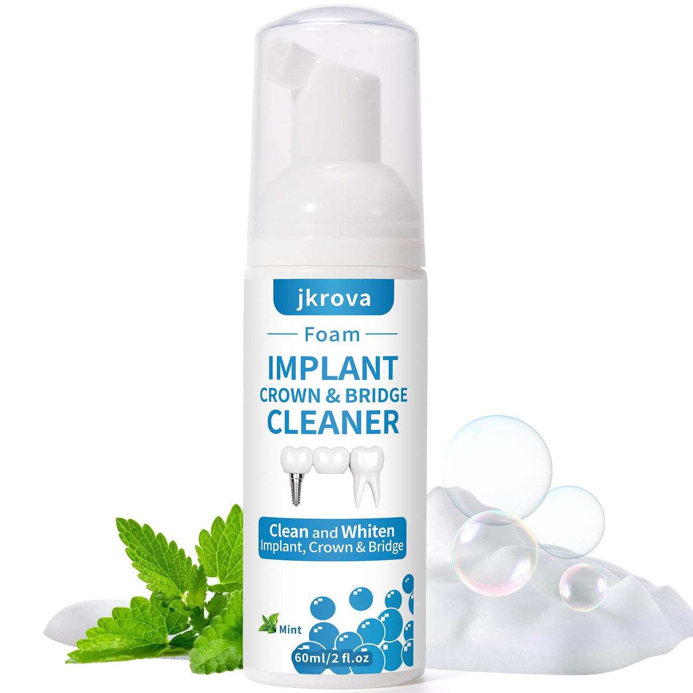 Dental Implant Cleaner, Cleans & Whitens Implants, Crowns, Bridges & Veneers, Freshens Breath & Supports Oral Health, Dental Bridge Cleaner Foam Bring Your Smile Back, 60ml