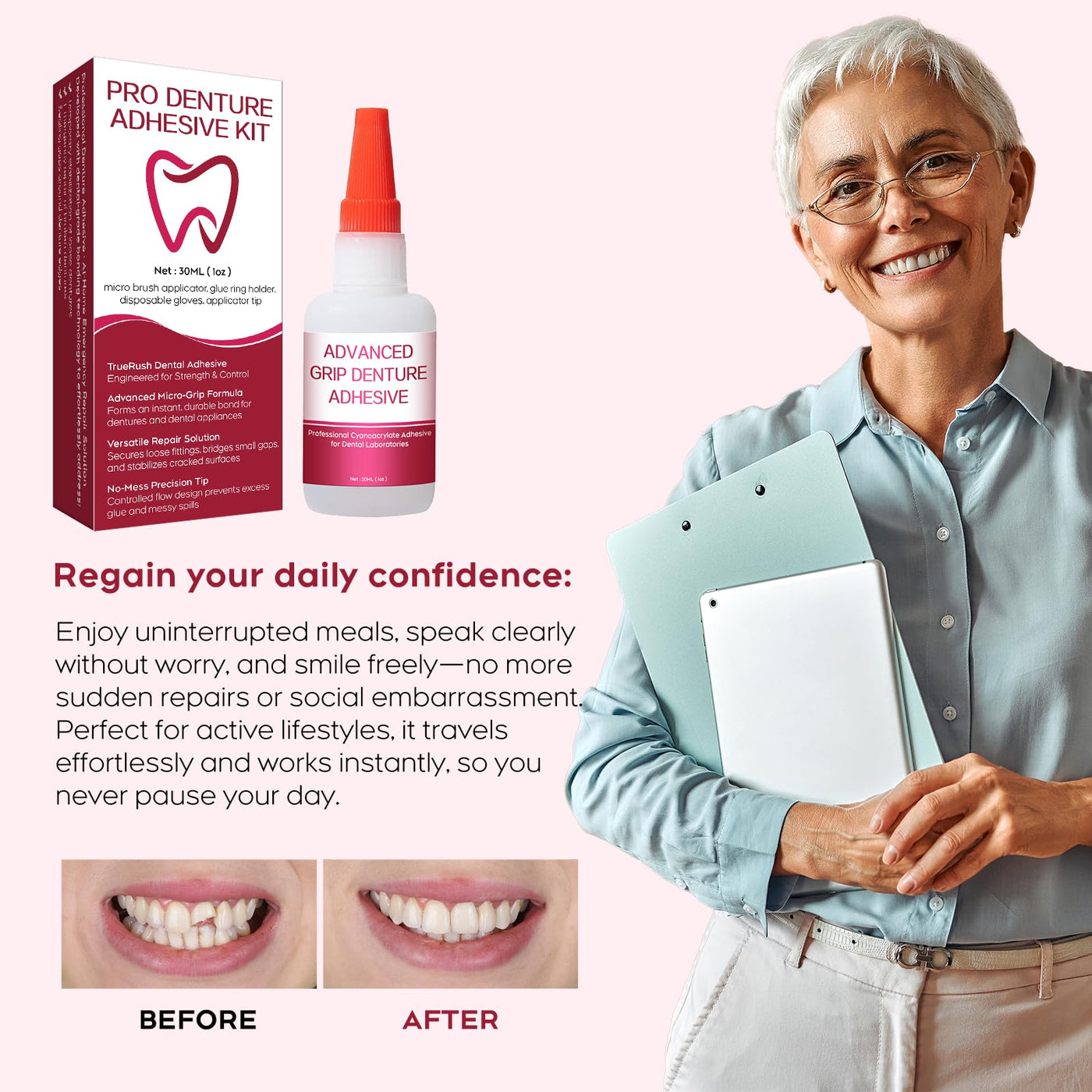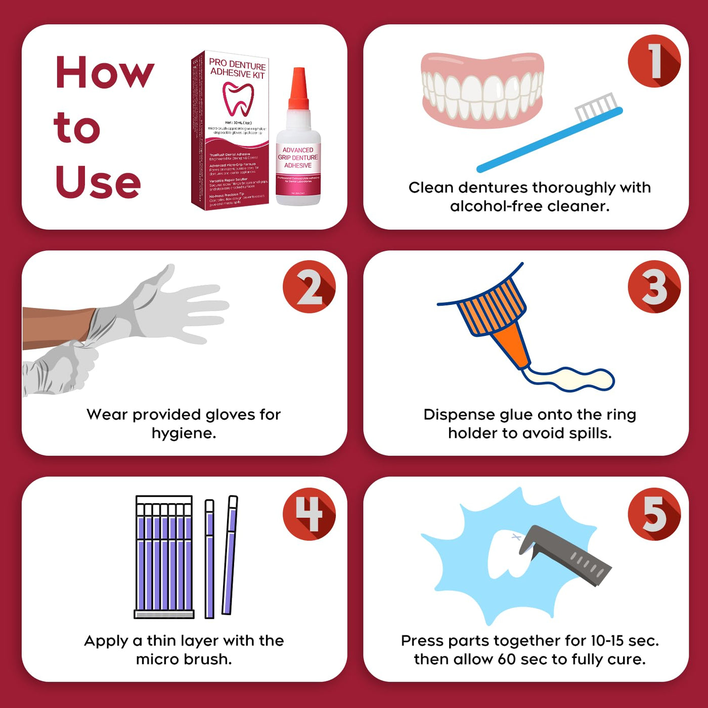 - Precision Repair for Multi-Scenario Needs: Secures loose denture parts | Fills tiny gaps | Temporarily bonds dental instruments Includes micro brush + precision tip, suitable for different delicate operations