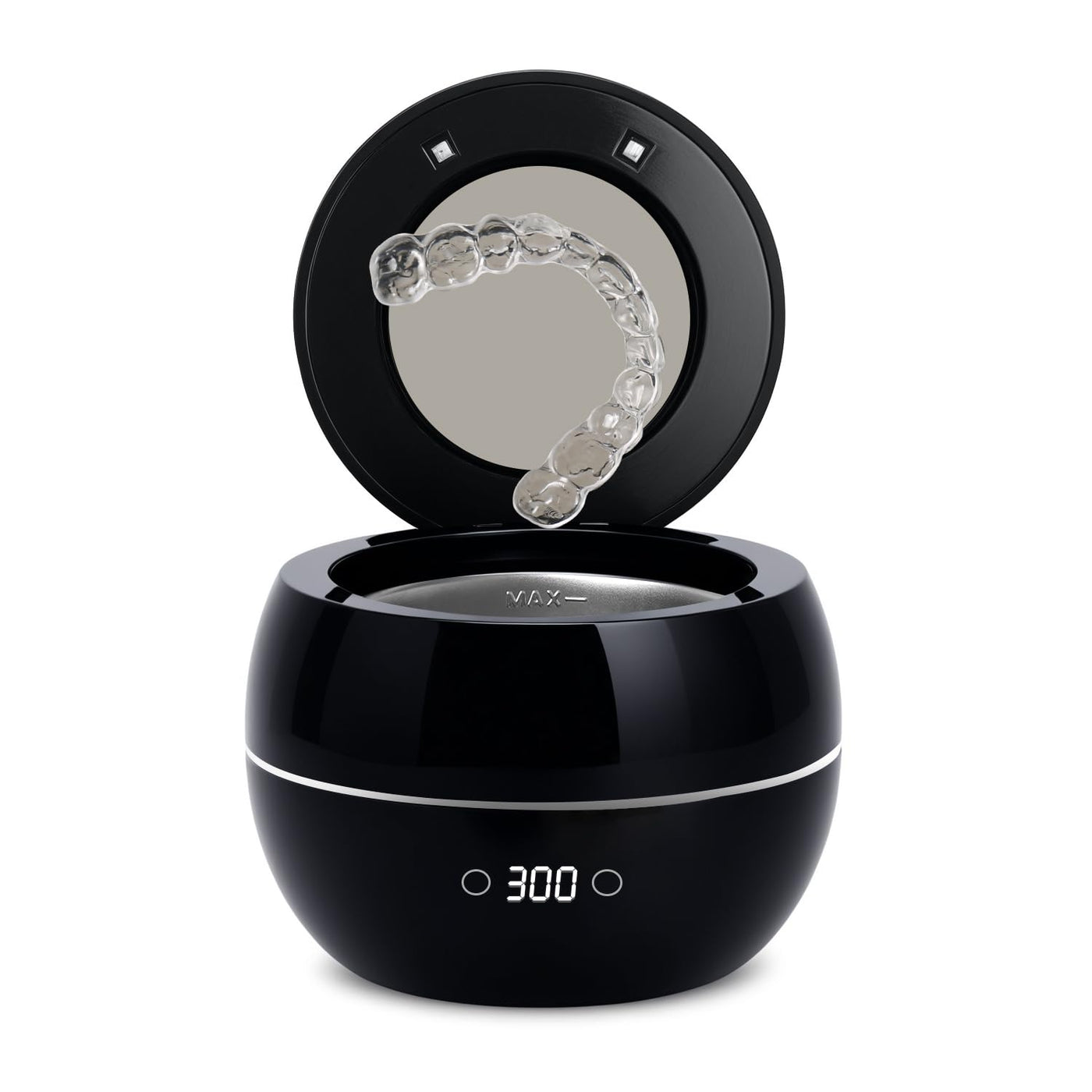 Dental Ultrasonic Retainer Cleaner Machine: 45kHz Dental Cleaning Pod for Denture, Aligner, Mouth Guard, Night Guard, Braces & Jewelry, UV Denture Cleaner with Digital Timer & Dual Mode 250ML Black