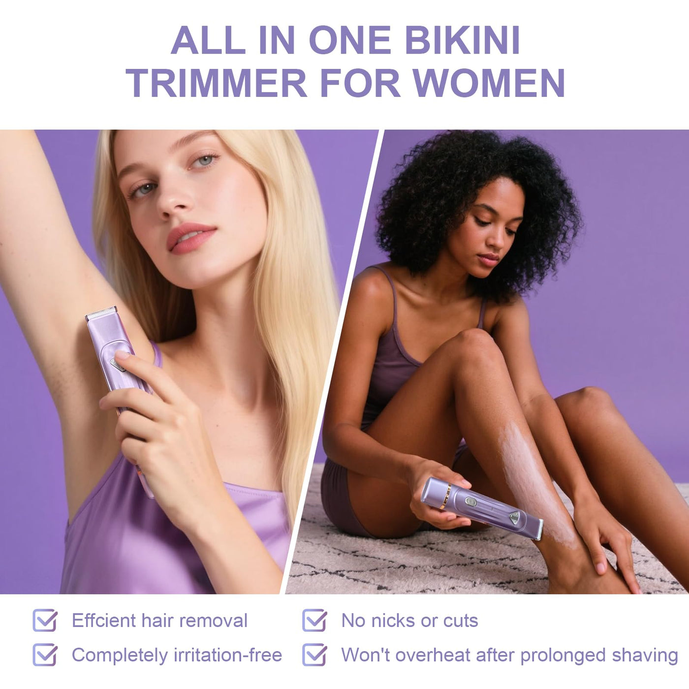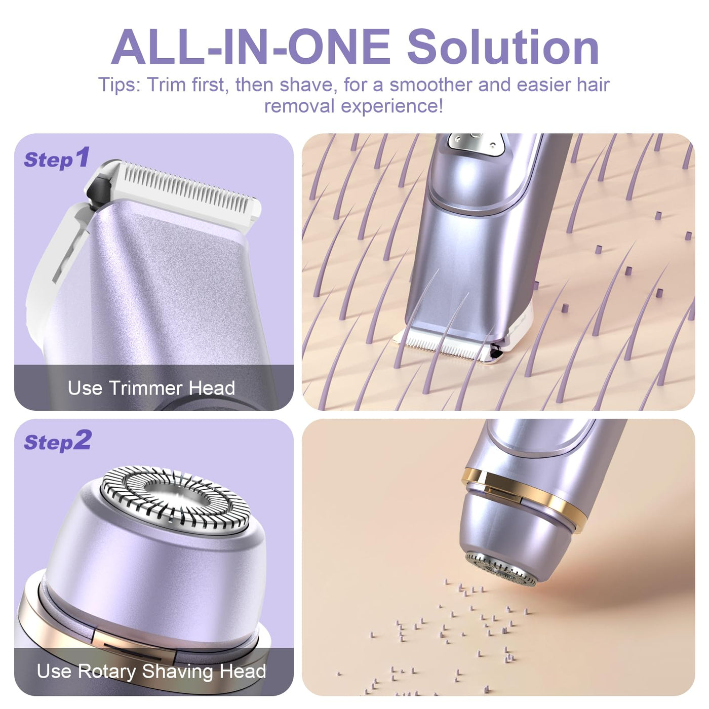 - Painless & Gentle Lady Shaver: Dual head shaver ideal women trimmer for pubic hair, ensuring a pain-free, irritation-free grooming experience, especially in sensitive areas