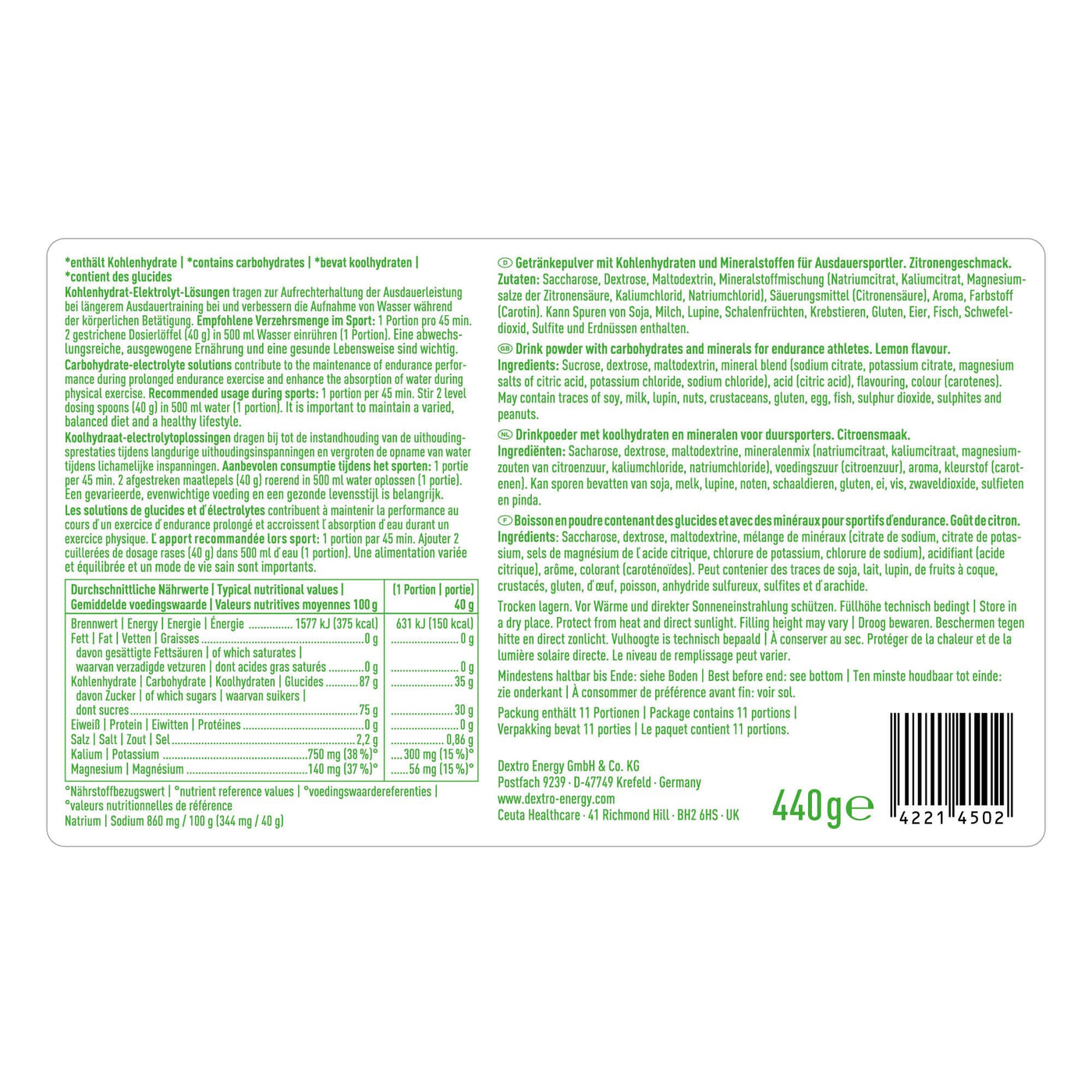 DEXTRO ENERGY ISO DRINK CITRUS FRESH (440g) - Isotonic drink powder with sodium, magnesium, potassium, chloride, fast carbohydrate supply, booster with electrolytes, gluten-free, lactose-free
