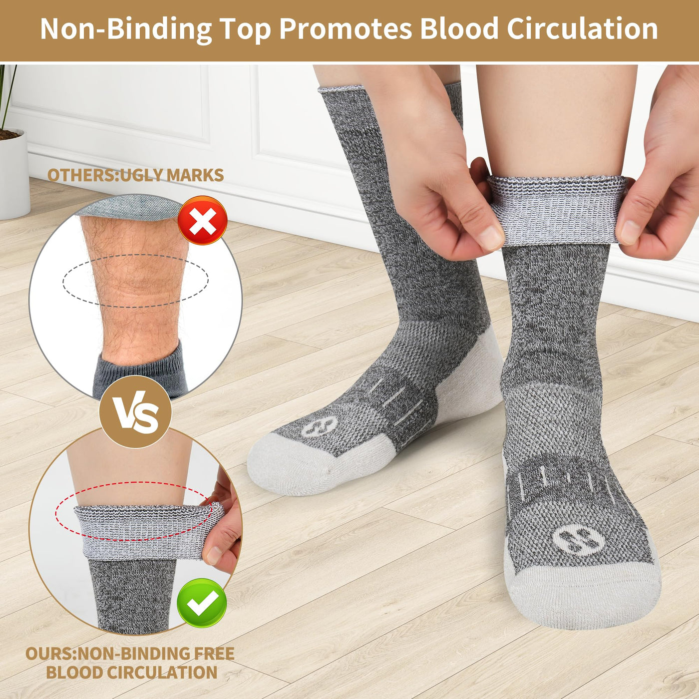Diabetic Socks for Men,6 Pairs Non Binding Crew Diabetic Socks for Men Size 9-12 Deep Grey/Brown/White/Deep Blue/Black/Deep Brown Large