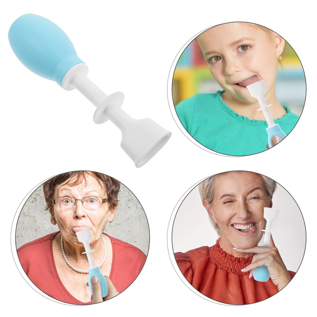 - Tongue training: The tongue muscle rehabilitation device effectively strengthens tongue muscles aiding in the improvement of swallowing functions for both the elderly and children