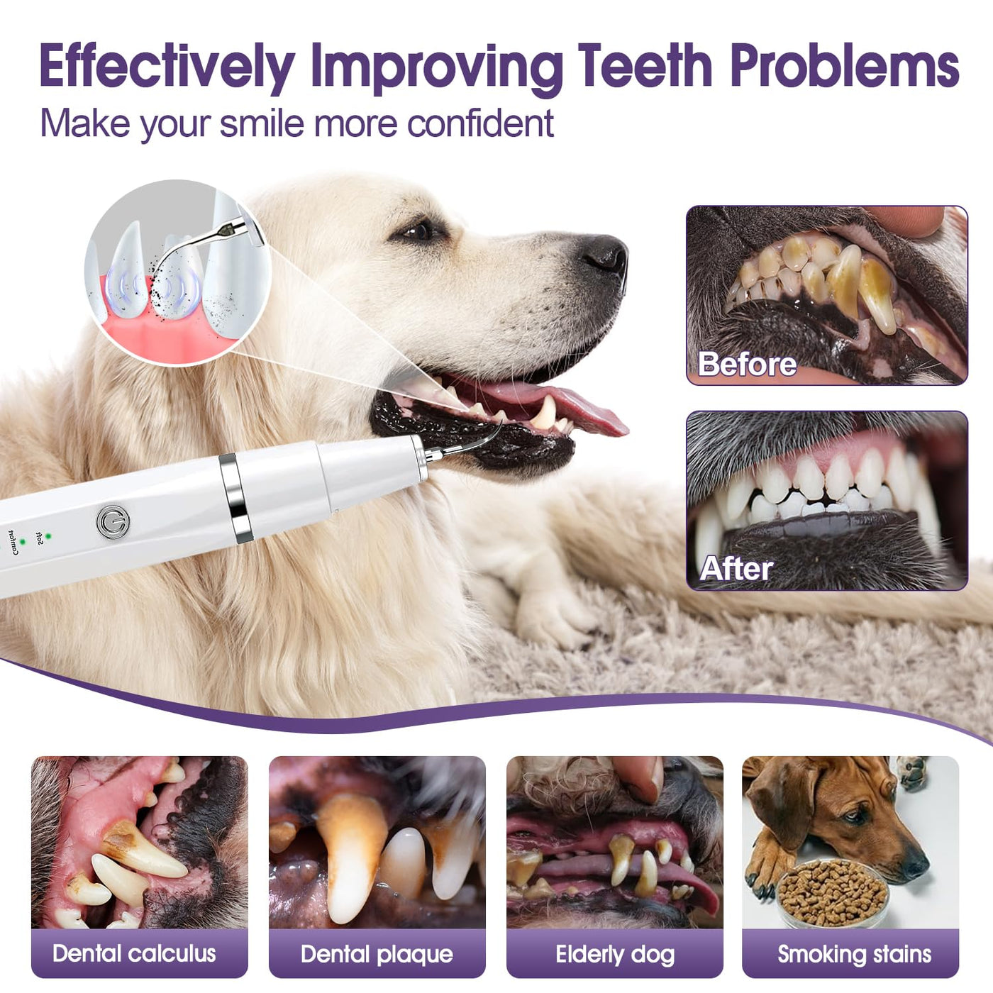 - Effective Dental Care: Keep your dog's teeth and gums healthy with our dental cleaning kit, featuring an ultrasonic teeth cleaner and plaque remover.