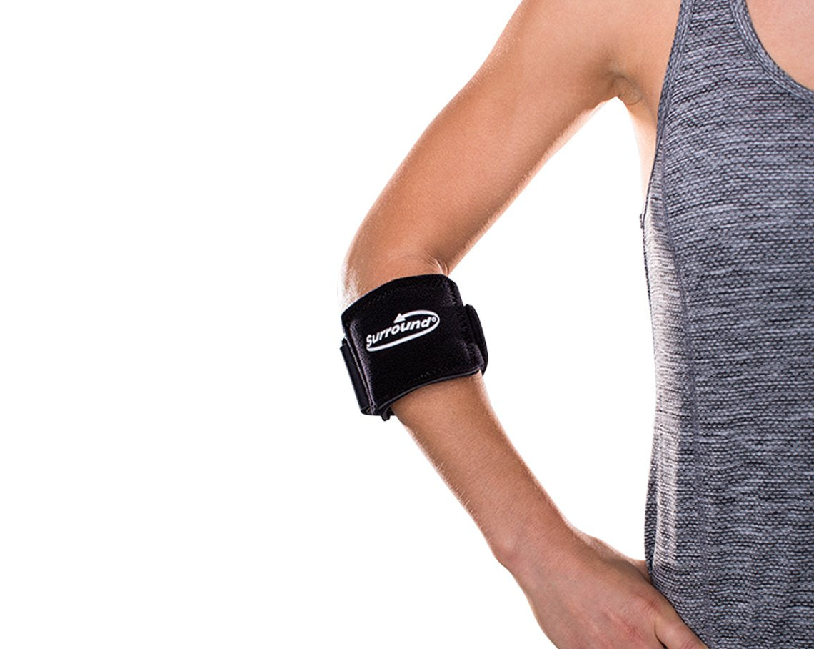 DonJoy Surround Elbow Support - Features & Benefits Comfortable neoprene strap features wraparound universal design with loop-lock closureThis elbow support is intended to reduce impact stress to the epicondyle and helps dissipate muscle force over a greater areaIndications include lateral/medial epicondylitis, bursitis, sprains, strains, and tendonitis Durable to withstand wear during exercise, sporting activities, and repetitive work conditionsUniversal size fits up to 18†circumference just below elbow Neoprene strap with uniquely designed padding is great for elbow problems