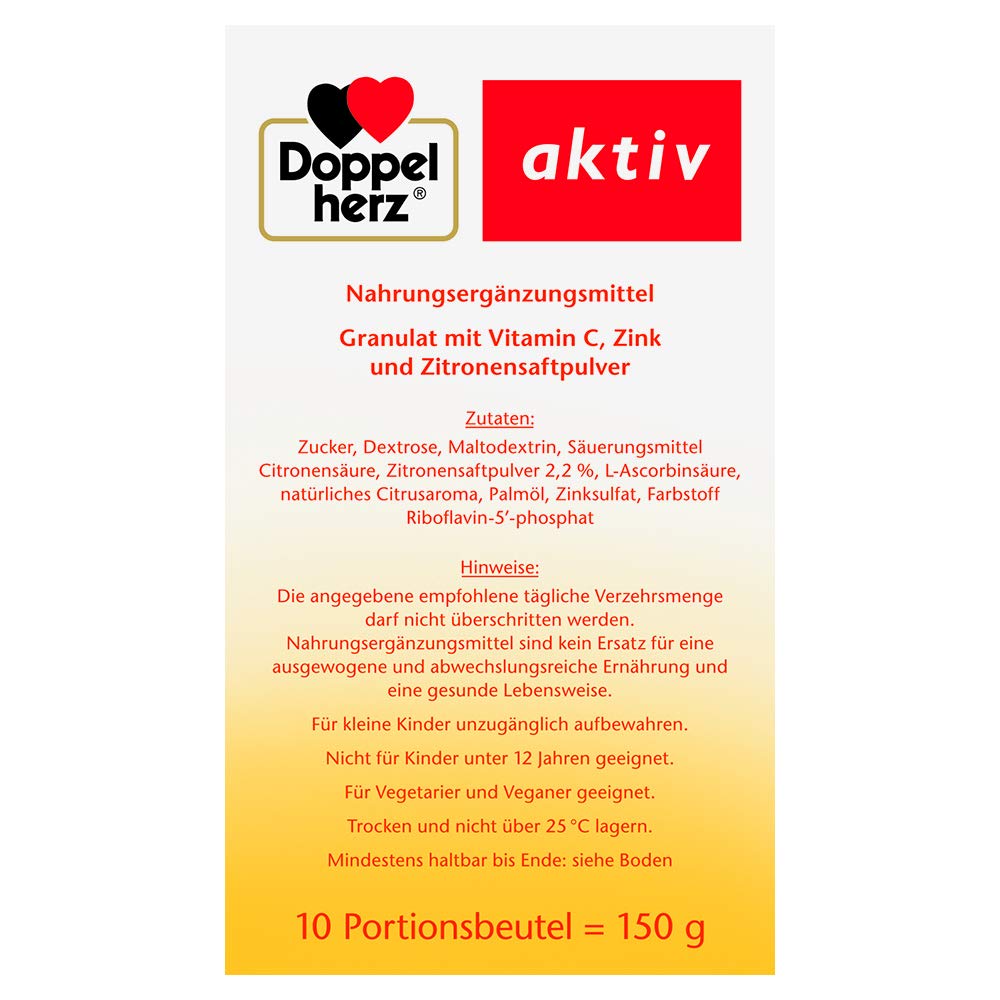 Product description Doppelherz presents the hot lemon with fruity sour taste. This is particularly important in winter and on cold days To support the immune system and strengthen the immune system. A portion of the In addition to lemon juice powder, the hot drink also contains vitamin C and zinc contribute to the normal functioning of the immune system. The delicious hot drink can be enjoyed both cold and hot. Ingredients/Ingredients Ingredients: sugar, dextrose, maltodextrin, acidifier citric acid, L-ascorbic acid, natural citrus flavor, palm oil, zinc sulfate, coloring Riboflavin 5´-phosphate, lemon juice powder 2.2% P.when('A').execute(function(A) { A.on('a:expander:toggle_description:toggle:collapse', function(data) { window.scroll(0, data.expander.$expander[0].offsetTop-100); }); }); Instructions for use Pour the contents of 1 sachet into a cup Pour hot, no longer boiling water (150 ml), stir and drink. Warnings The stated recommended daily consumption amount must not be exceeded. Dietary supplements are not a substitute for one balanced and varied diet and a healthy lifestyle. For Keep out of the reach of small children. Not for children under 12 years suitable. More