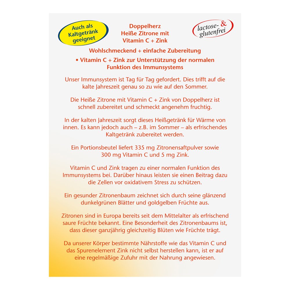 - Scope of delivery: Pack of 10 sachets of Doppelherz hot lemon / delicious hot drink with vitamin C and zinc / vegan, gluten-free and lactose-free