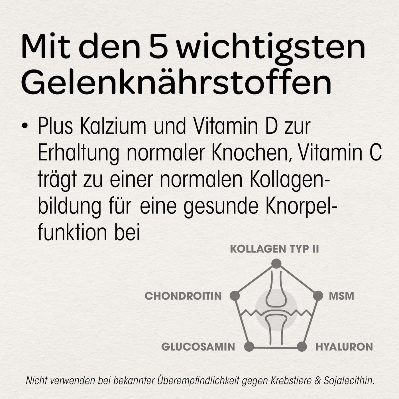 - COMBI PRODUCT: The tablets contain an extra strong 5-fold combination of the nutrients glucosamine, chondroitin, MSM, collagen type II and hyaluronic acid, as well as vitamin C, manganese and vitamin D