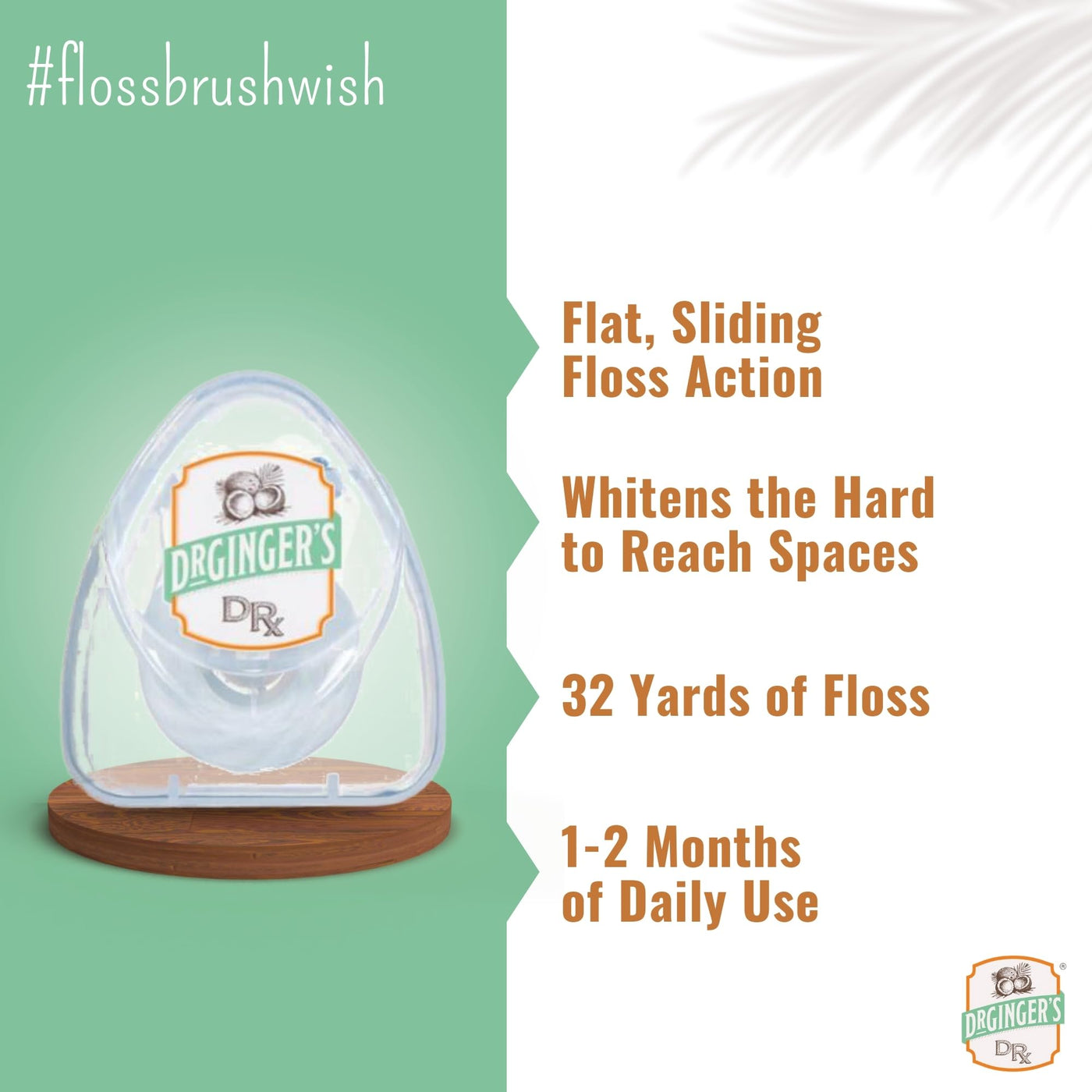 - DR. GINGER'S WHITE CHARCOAL DENTAL FLOSS Help whiten the hard-to-reach spaces with a flat and smooth floss action. Flavored with tasty organic coconut oil and peppermint. Enough floss to last one to two months of daily use. Packaging includes 32yd box, 3ct