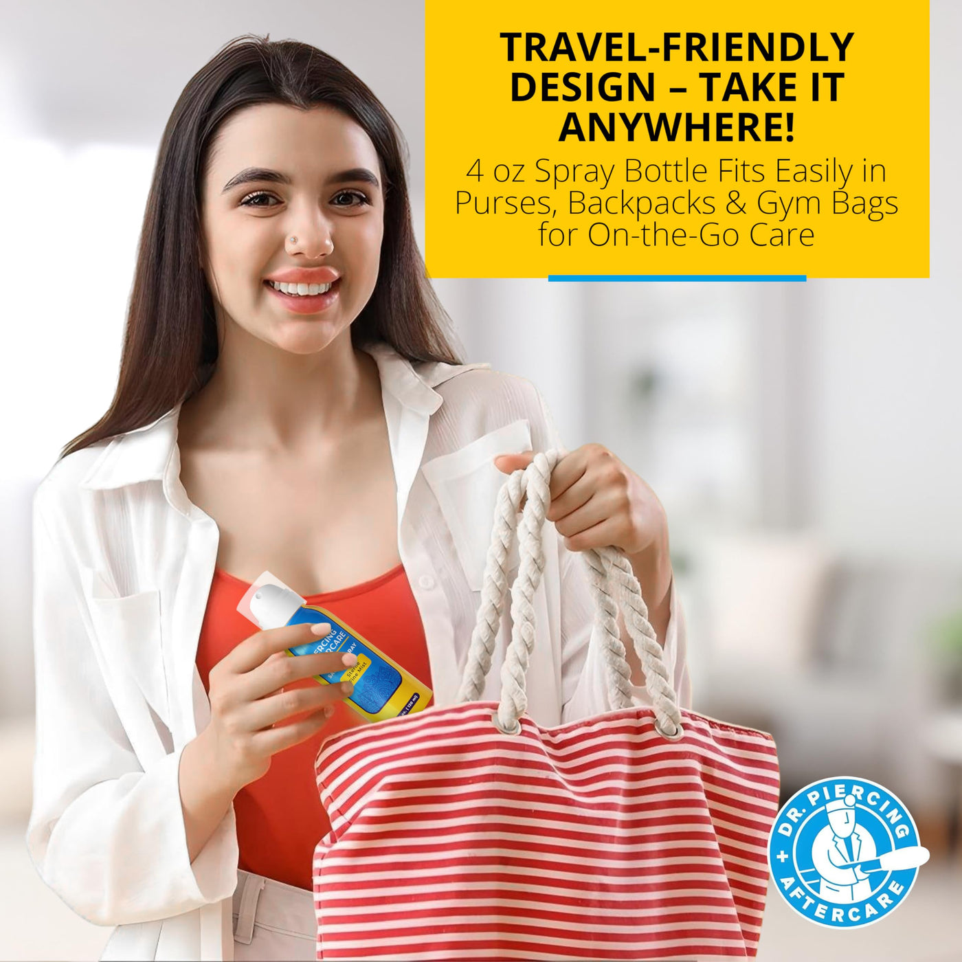 Dr. Piercing Aftercare – Piercing Aftercare Sterile Saline Spray - Sterile Saline Solution for Piercings - Ear Piercing Cleaner Saline Wash Spray - Nose, Ear, Belly & Piercing Bump – 4.0 oz