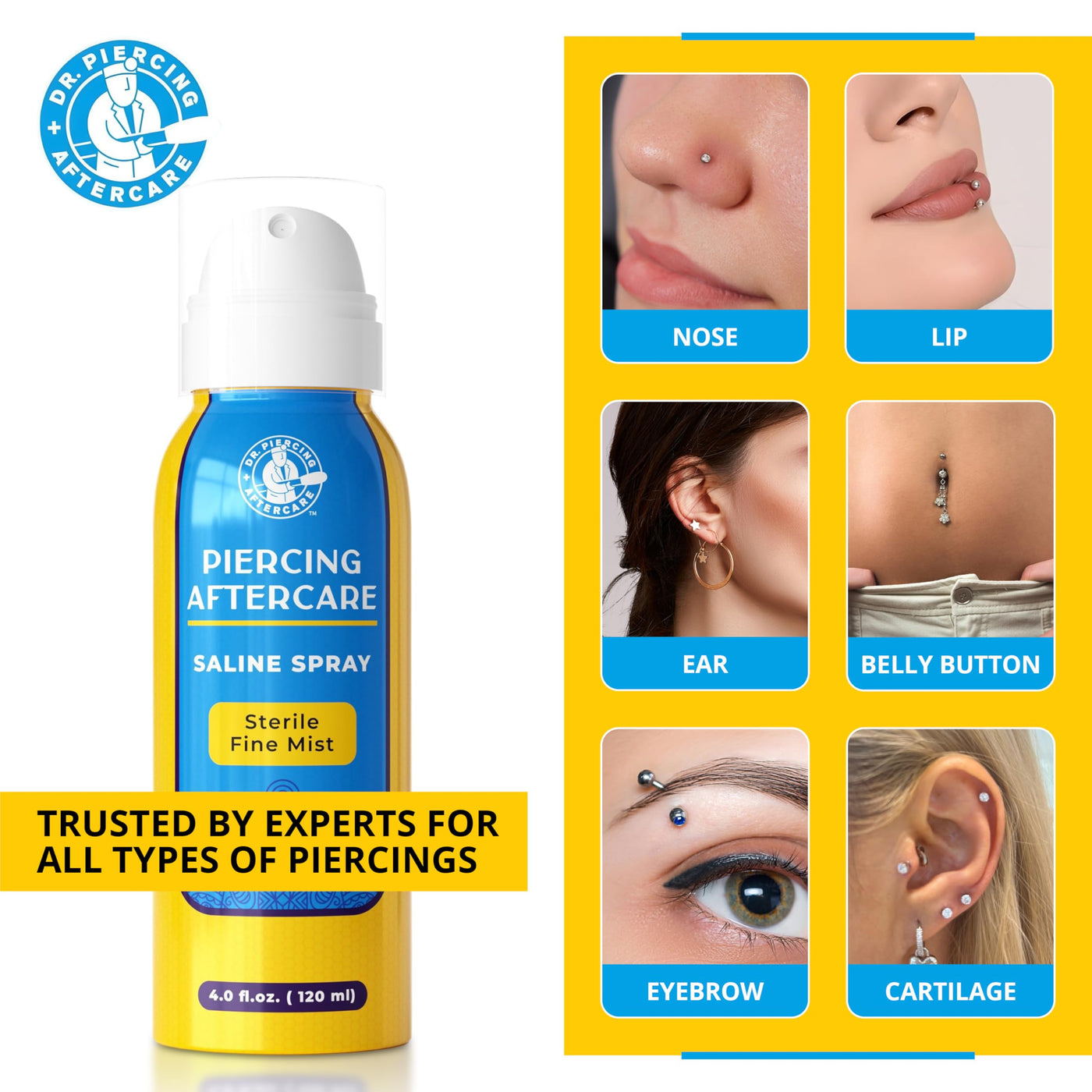 - STERILE FROM THE FIRST SPRAY TO THE LAST - Dr. Piercing Aftercare spray is manufactured in a GMP compliant facility and formulated using a saline-based liquid, safe for piercings, that delivers consistent and long-term results. Apply spray to the desired area 2x per day, or as needed. Results may take a few days to become visible.