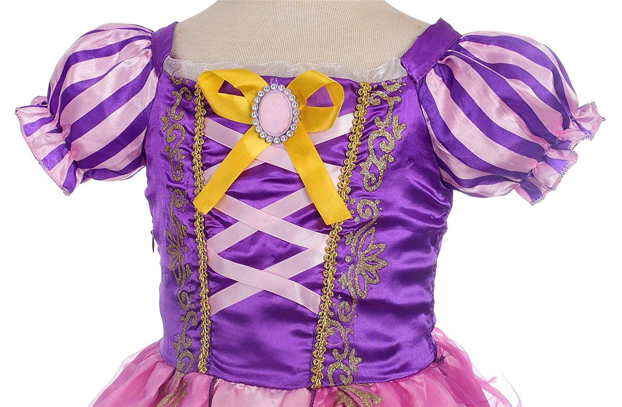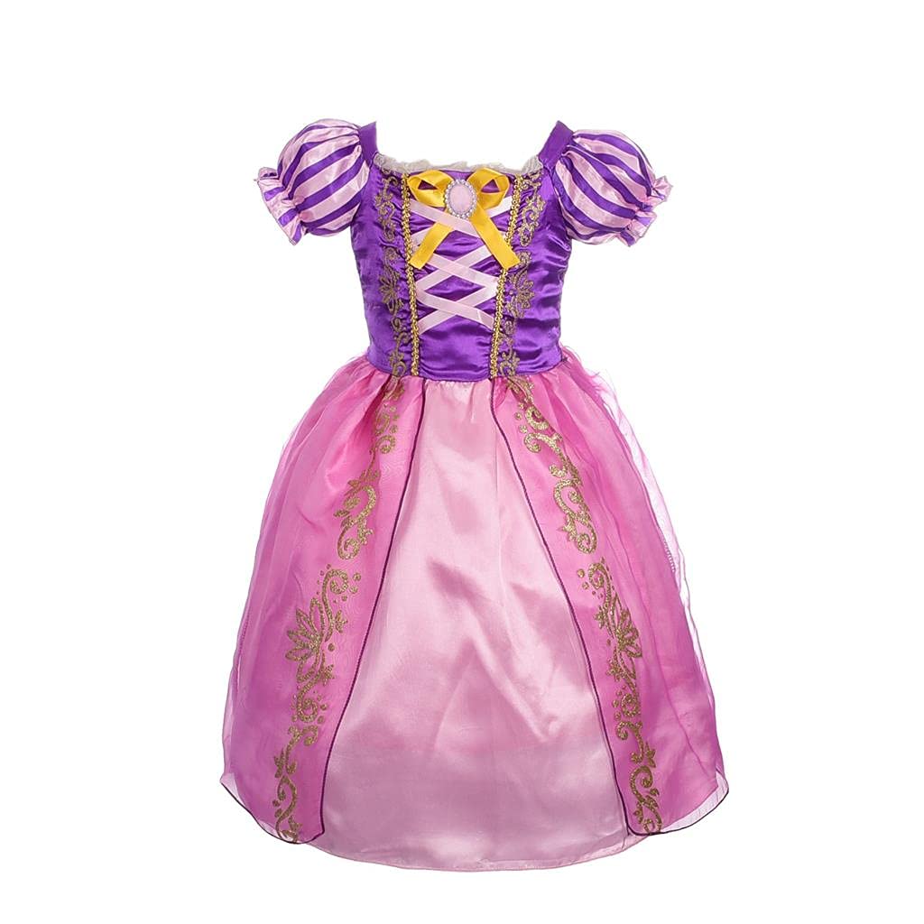 - Stunning Princess style costume. This dress will make your girl stands out in any crowd with its delicate blend of pinks and purples.