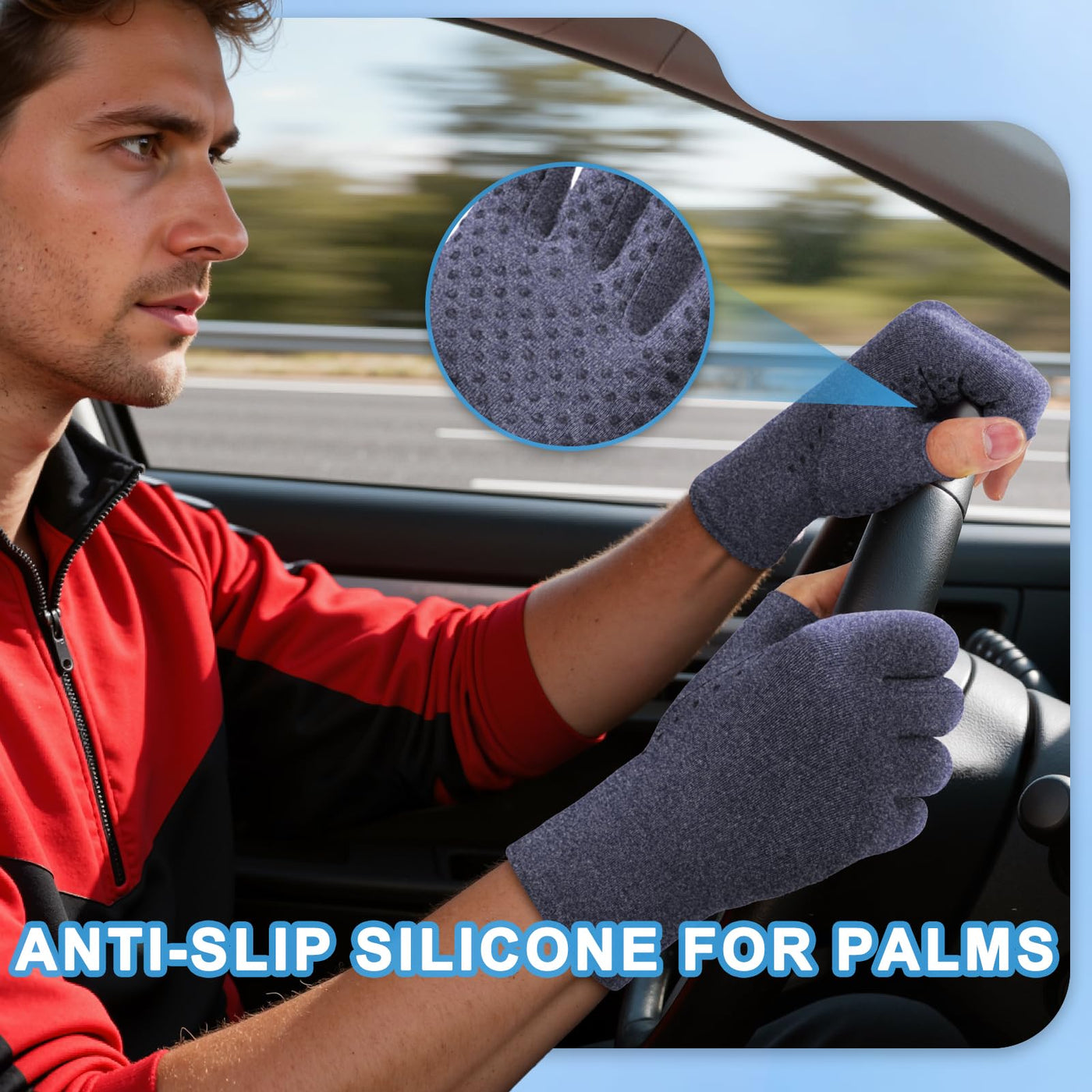 DRNAIETY 2-Pair Arthritis Compression Gloves- for Hand Arthritis, Carpal Tunnel Pain, Rheumatoid Arthritis, RSI, Fingerless, Anti-Slip, Breathable Gloves for Men & Women, Typing, Daily Use(M Blue)